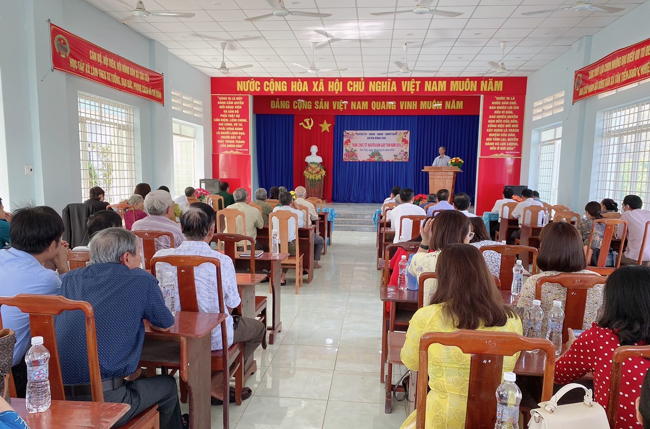 Tại đây, đoàn công tác đã thông tin nhanh tới các đảng viên về tình hình kinh tế - xã hội của huyện; đồng thời thăm hỏi sức khỏe, đời sống và trao 38 phần quà, mỗi phần trị giá từ 400 ngàn đồng đến 2 triệu đồng (trong đó 30 tuổi đảng là 14 đảng viên, 40 tuổi đảng là 8 đảng viên, 50 tuổi đảng là 8 đảng viên, 55 tuổi đảng là 6 đảng viên, 70 tuổi đảng 1 đảng viên và 1 đảng viên có hoàn cảnh khó khăn), với mong muốn các gia đình đón tết cổ truyền đầm ấm, hạnh phúc.