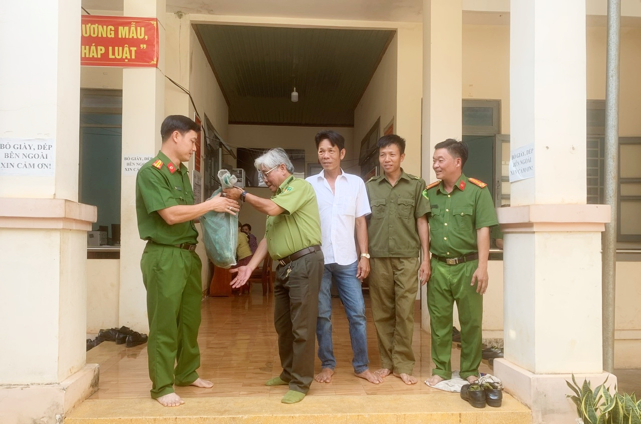 Công an xã Thuận Lợi bàn giao 1 cá thể diều hoa Miến Điện do người dân giao nộp cho Hạt kiểm lâm