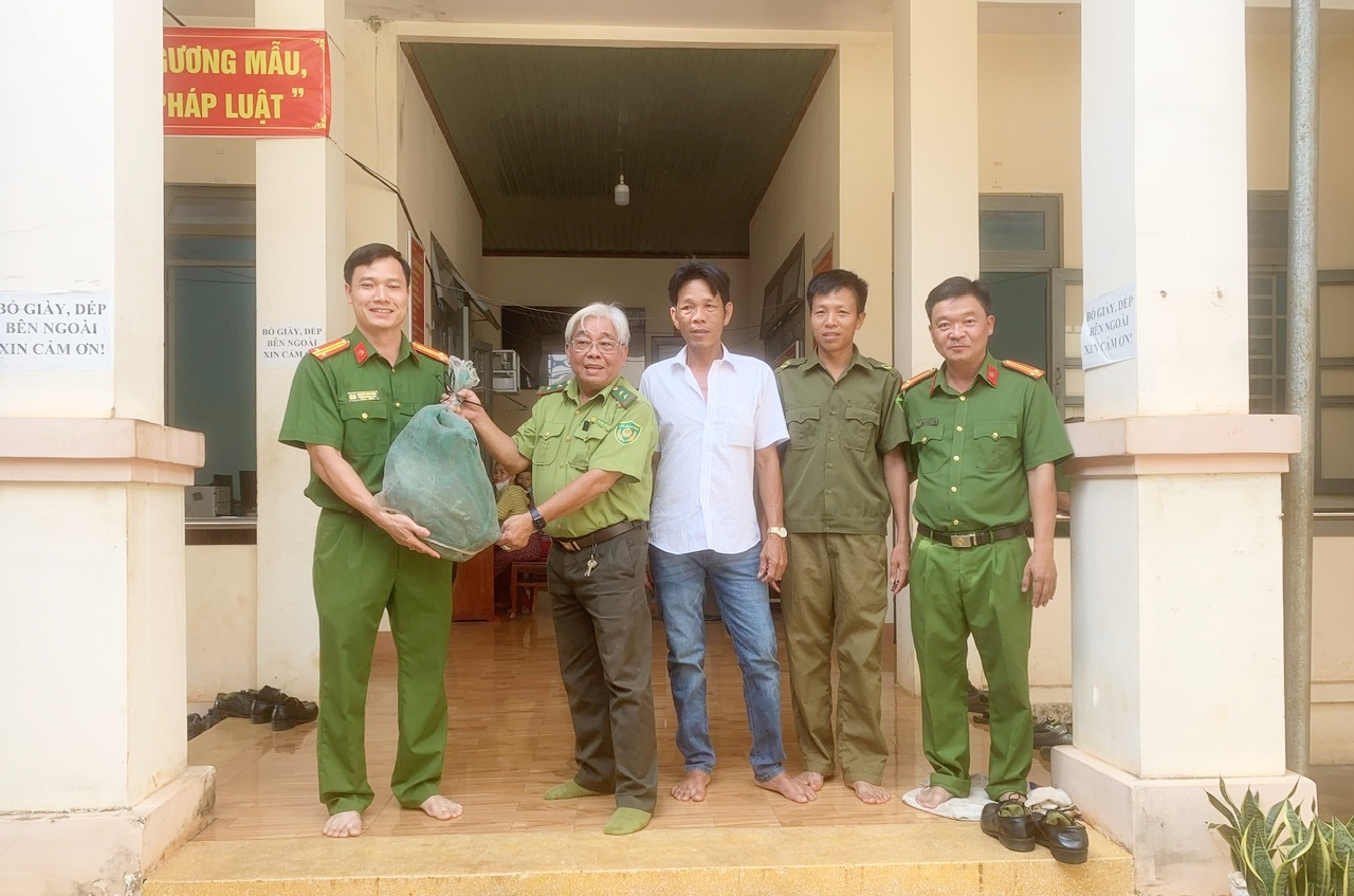 Trước sự chứng kiến của anh Nguyễn Văn Tèo, Công an xã Thuận Lợi đã bàn giao cá thể diều hoa Miến Điện cho Hạt kiểm lâm huyện để chăm sóc, nuôi dưỡng, khi đủ điều kiện sẽ thả về môi trường tự nhiên.