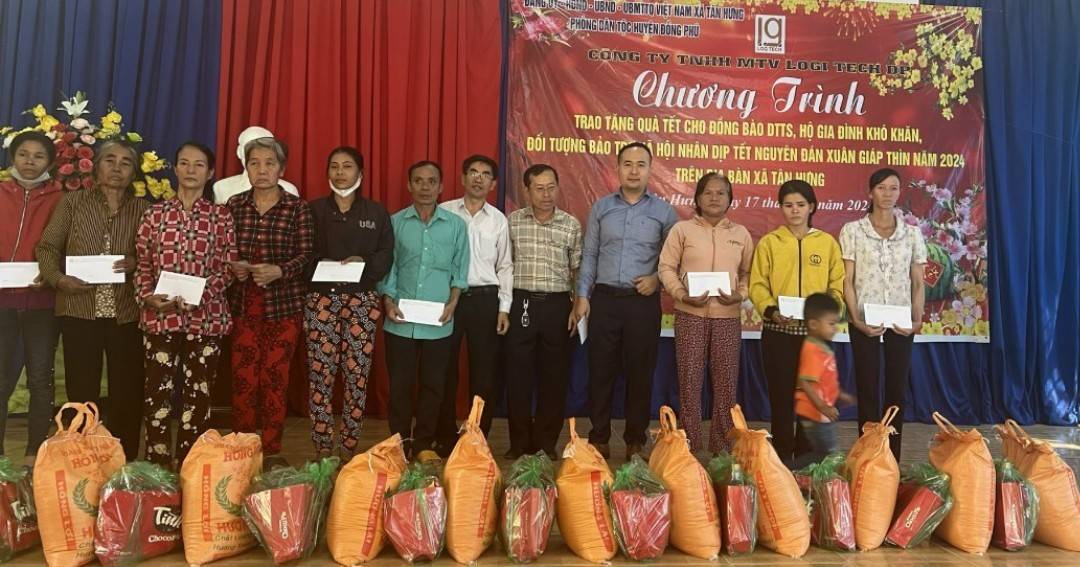 Sáng 17-1-2024, Phòng Dân tộc huyện Đồng Phú phối hợp Đảng ủy, UBND xã Tân Hưng, Công ty TNHH MTV Logi Tech DP đã tổ chức lễ trao tặng quà cho đồng bào dân tộc thiểu số nghèo, có hoàn cảnh khó khăn trên địa bàn xã Tân Hưng.