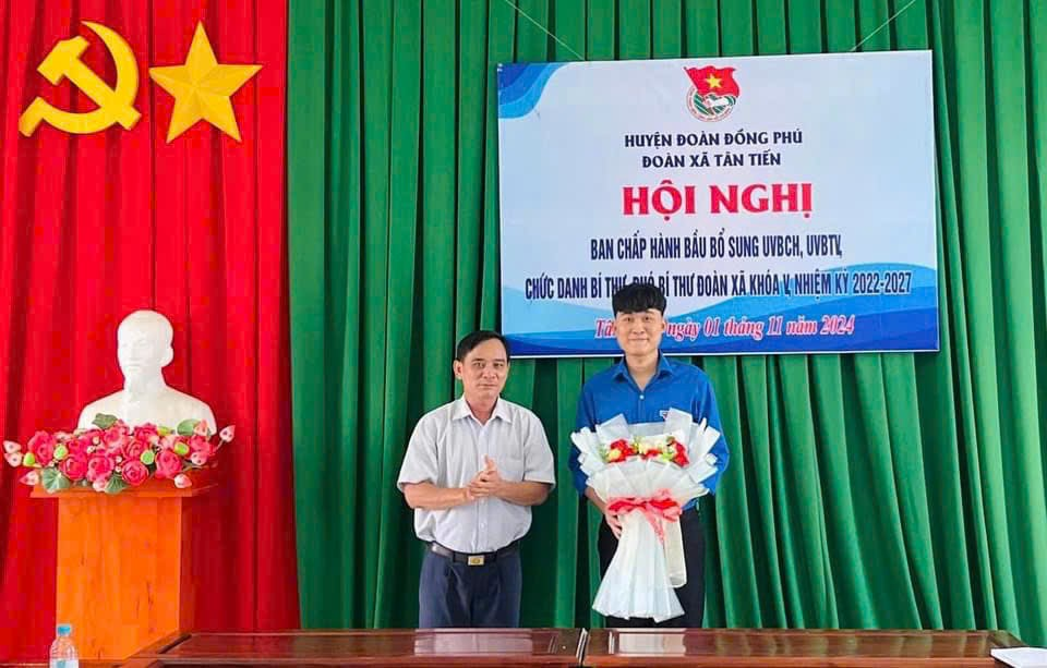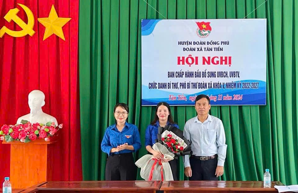 Phát biểu nhận nhiệm vụ, chị Vũ Trần Thanh Huyền cảm ơn sự quan tâm của BTV Huyện đoàn Đồng Phú, BTV Đảng ủy xã, Đoàn xã Tân Tiến. Đồng thời, hứa sẽ tiếp tục rèn luyện, học hỏi, nâng cao trình độ, nhận thức chính trị, đáp ứng yêu cầu nhiệm vụ mới, sẽ phát huy sức trẻ, đoàn kết cùng với tập thể BCH Đoàn xã quyết tâm thực hiện thắng lợi mọi nhiệm vụ được giao, tiếp tục xây dựng công tác Đoàn và phong trào Thanh thiếu nhi xã Tân Tiến ngày càng vững mạnh.