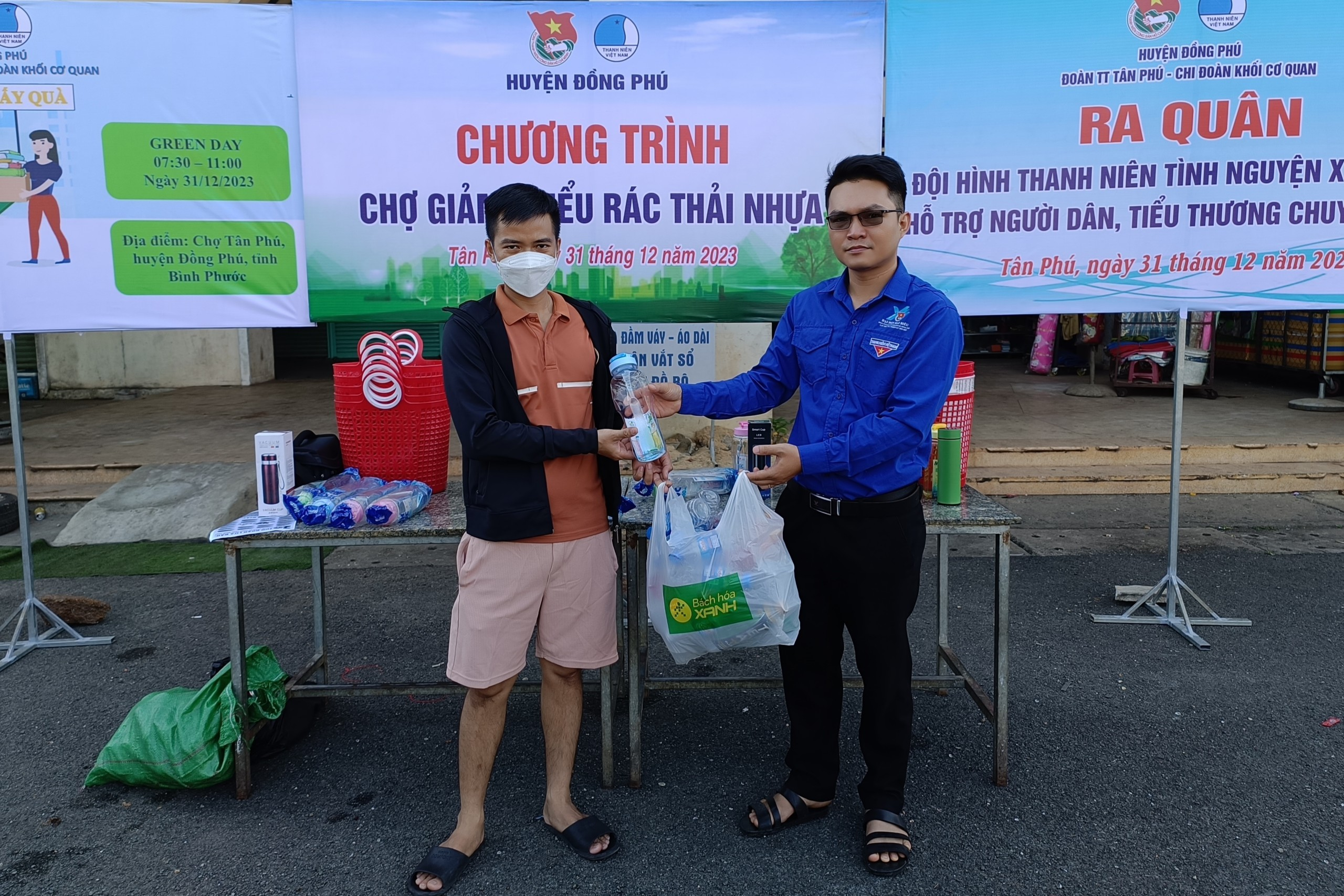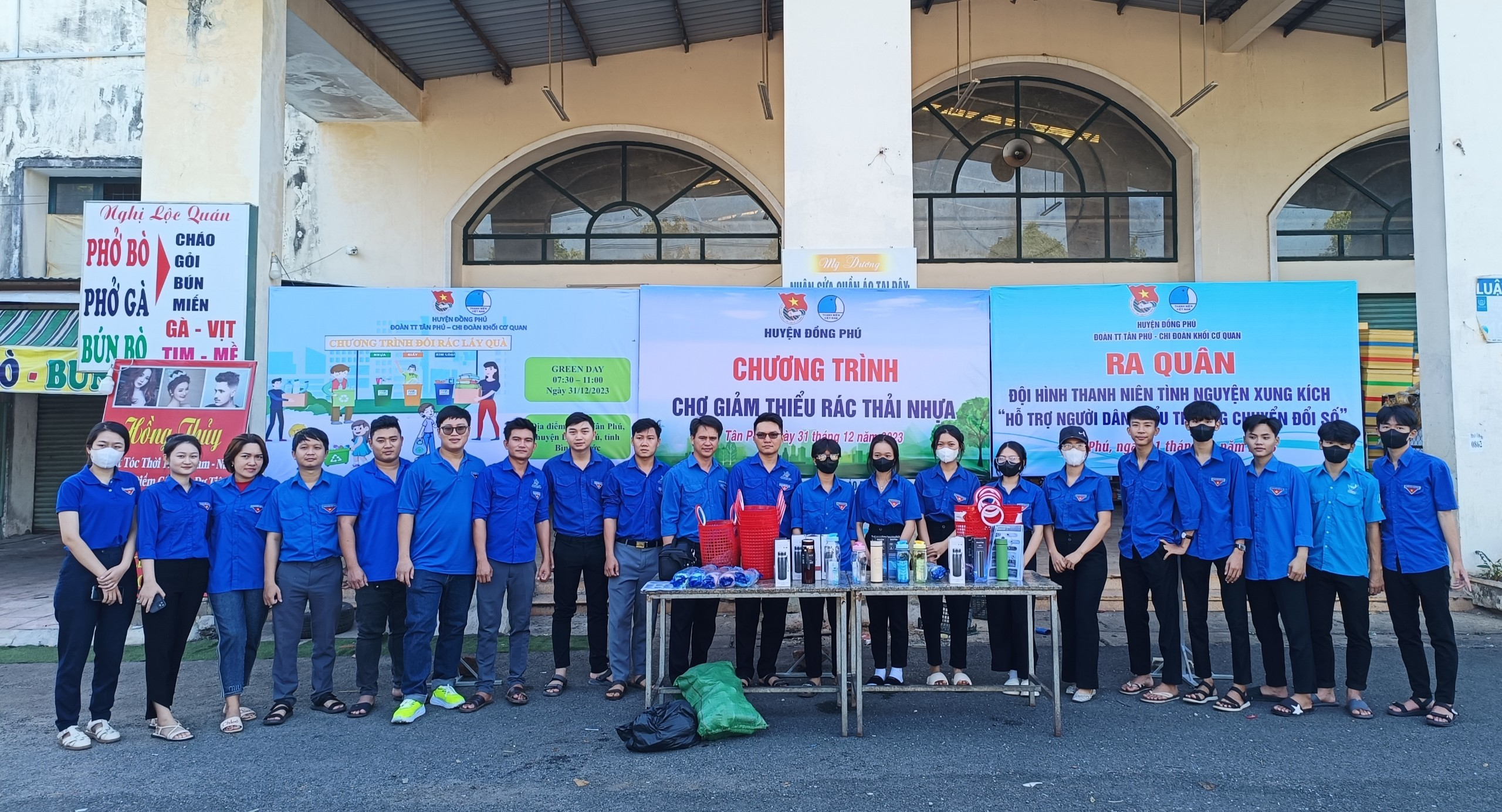 Ngày 31-12-2023, Huyện đoàn Đồng Phú phối hợp Phòng Tài nguyên và môi trường huyện đã tổ chức chương trình “Chợ dân sinh giảm thiểu rác thải nhựa” năm 2023. Đây cũng là hoạt động chung tay Xây dựng Nông thôn mới của tuổi trẻ Đồng Phú.