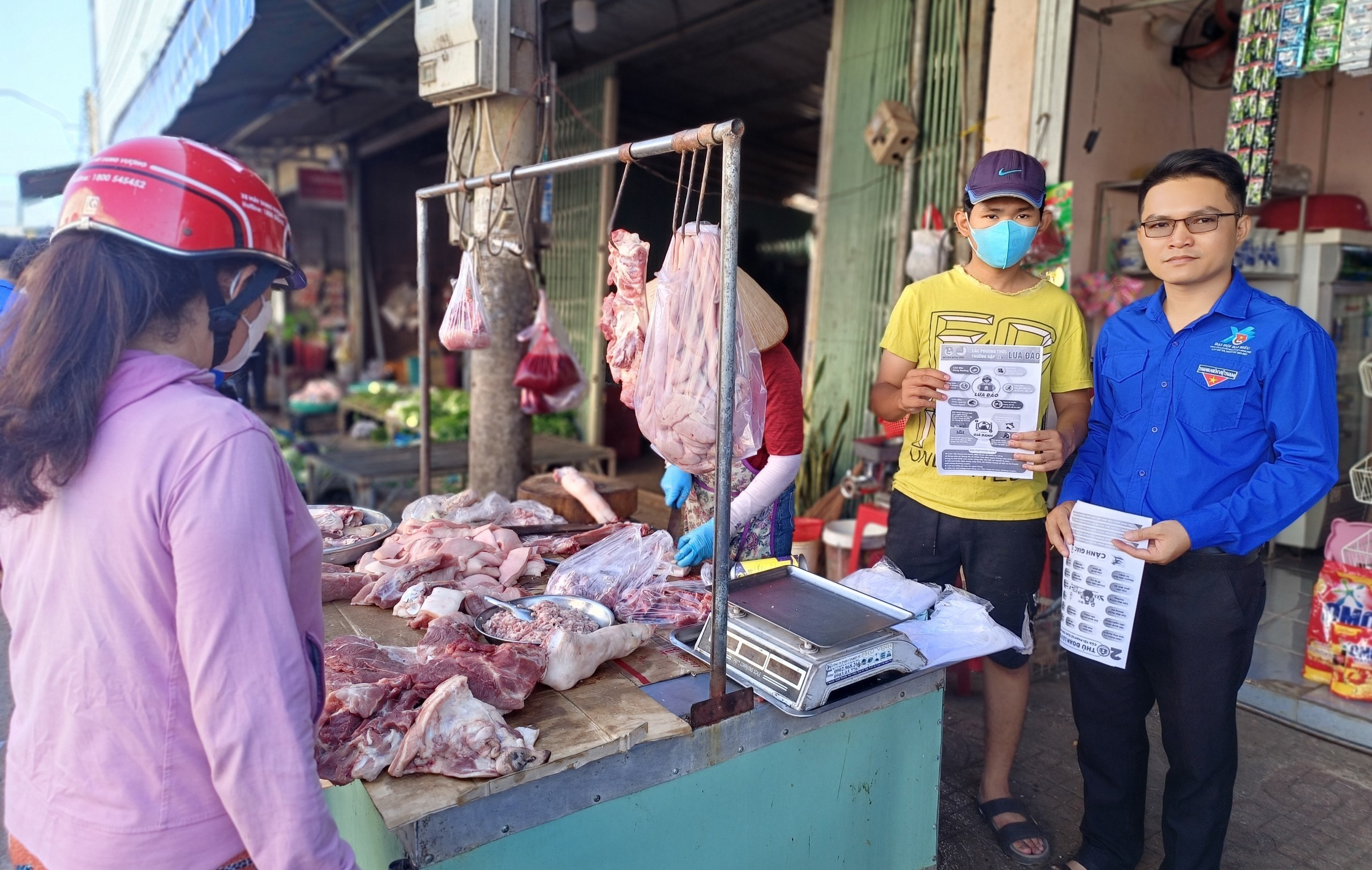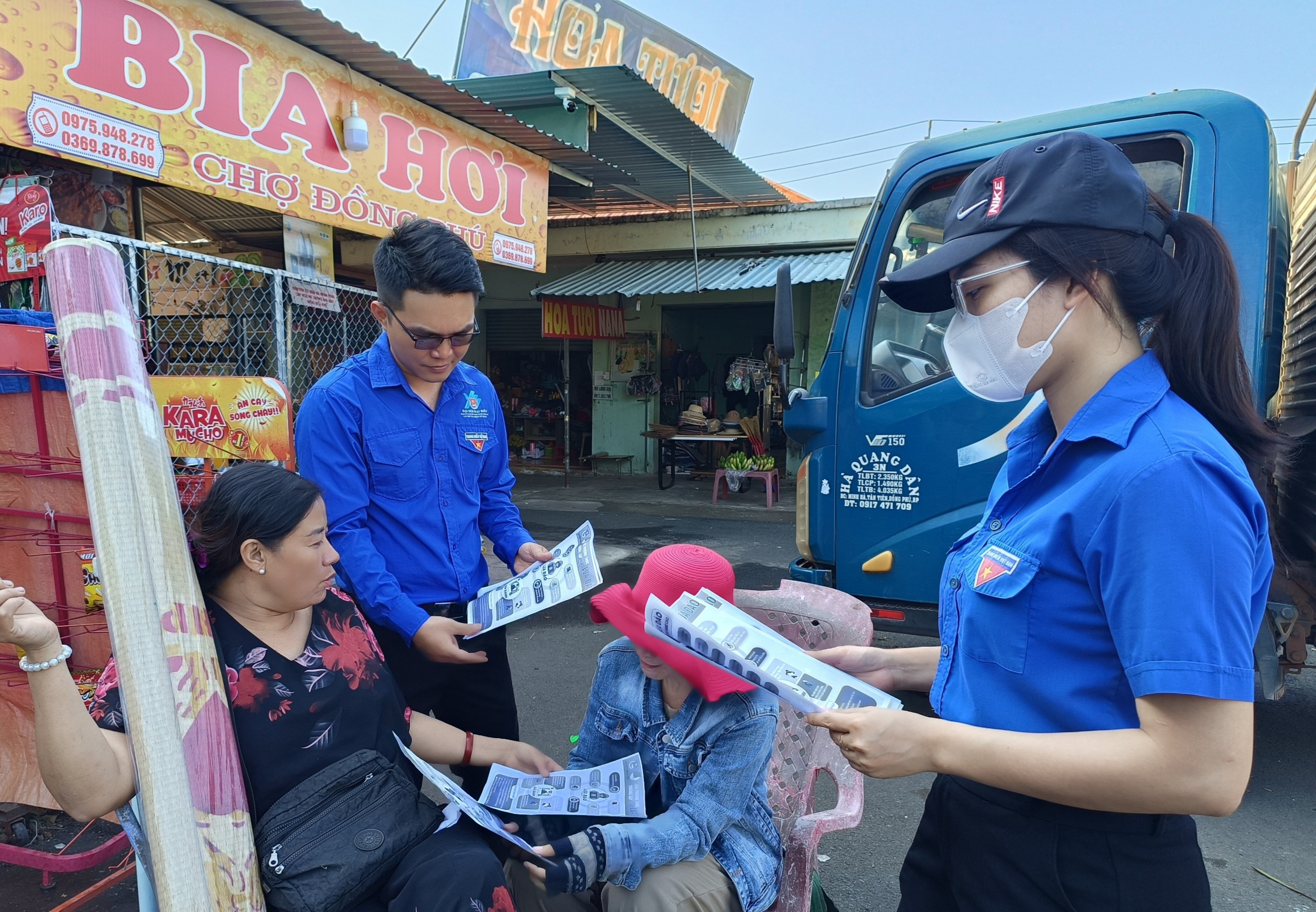 Phát tờ rơi tuyên truyền bảo vệ môi trường tại chợ Đồng Phú