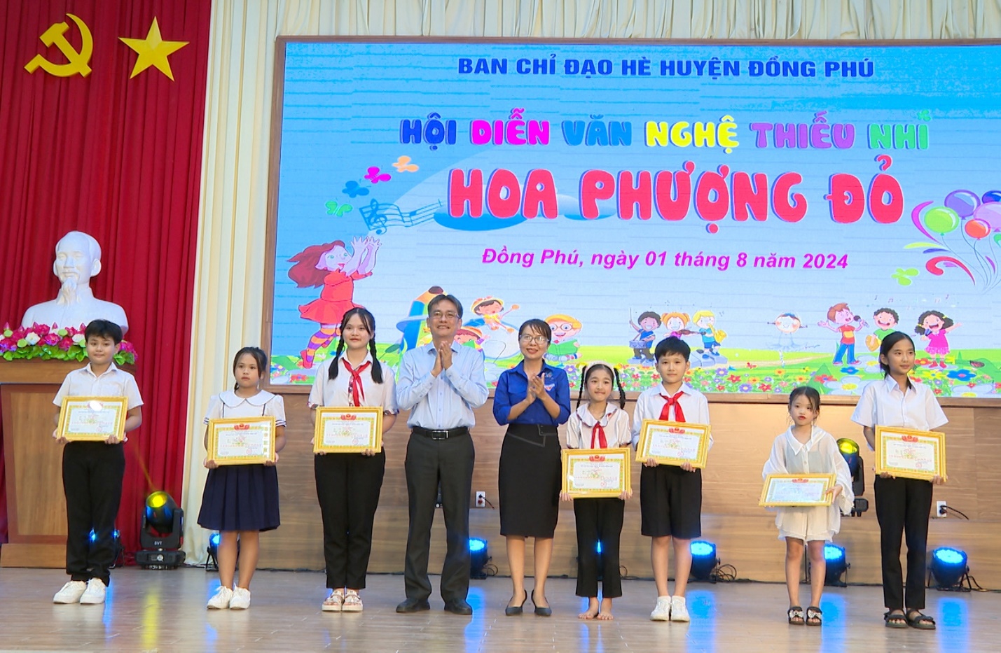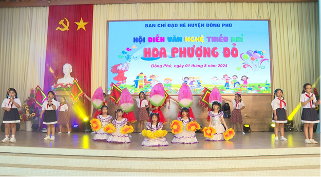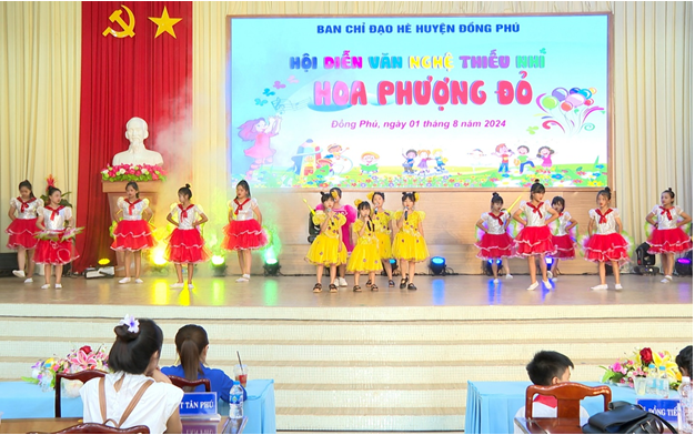 Nhằm tạo sân chơi bổ ích, lành mạnh cho thiếu nhi trong dịp hè, ngày 1-8, Ban chỉ đạo hè huyện Đồng Phú đã tổ chức Hội diễn văn nghệ thiếu nhi “Hoa phượng đỏ” năm 2024. Hơn 230 em thiều nhi của 11 đội thi đến từ các xã, thị trấn trong huyện tham gia hội diễn.