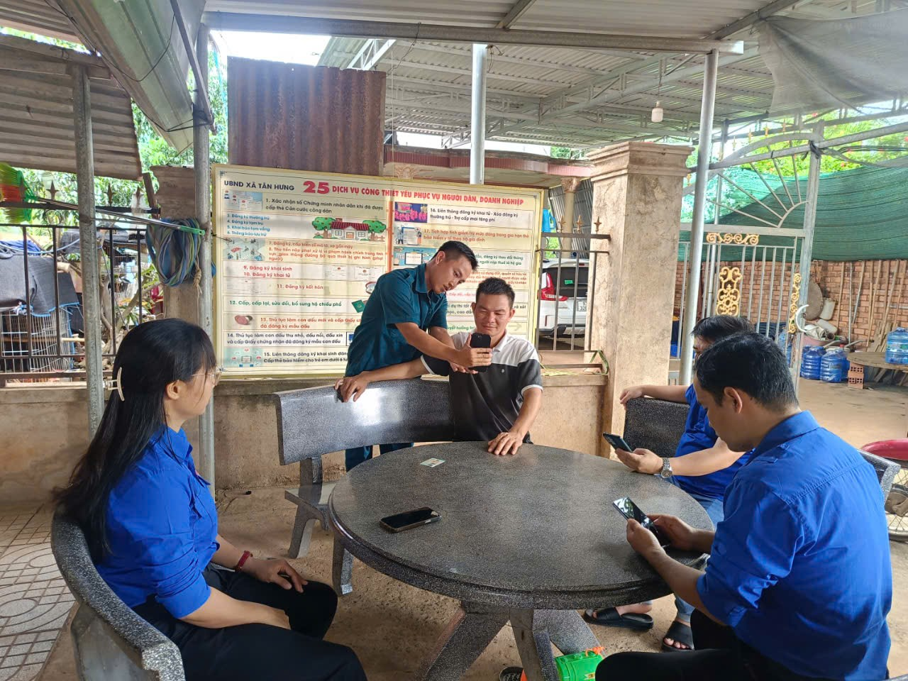 Đoàn viên, thanh niên xã Tân Hưng "đi từng ngõ, gõ từng nhà, hướng dẫn từng người" thực hiện các thủ tục hành chính trên môi trường điện tử