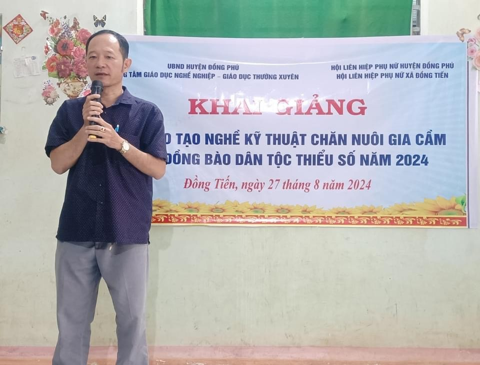 Tại lễ khai giảng, ông Trần Thanh Tâm, Phó Giám đốc Trung tâm Giáo dục nghề nghiệp - Giáo dục thường xuyên huyện đã triển khai quyết định mở lớp, thông tin về chương trình, thời gian đào tạo của lớp học; thông tin một số chế độ chính sách đối với các đối tượng tham gia học nghề. Đồng thời yêu cầu toàn thể học viên học tập nghiêm túc, đảm bảo khi kết thúc khóa học, tất cả học viên đều nắm được các kiến thức, kỹ năng cơ bản để vận dụng vào thực tế chăn nuôi gia cầm.