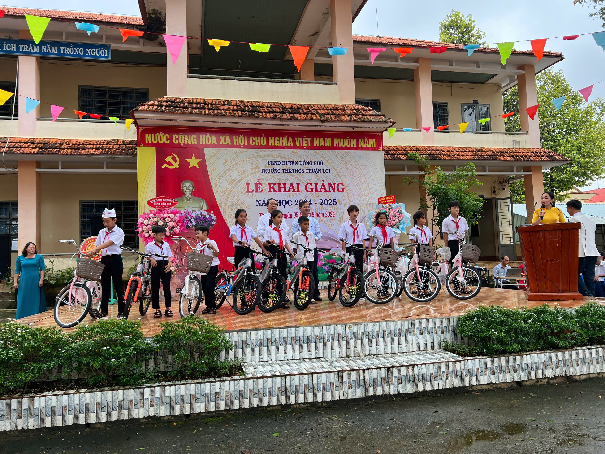 Doanh nghiệp tư nhân Ý Nga tặng 10 xe đạp cho học sinh khó khăn Trường TH&THCS Thuận Lợi trong Lễ Khai giảng.