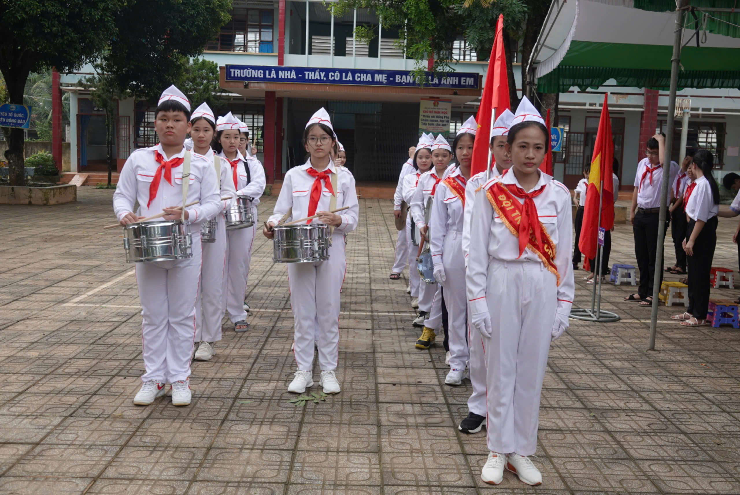 Đội trống Trường THCS Tân Tiến trong Lễ Khai giảng.