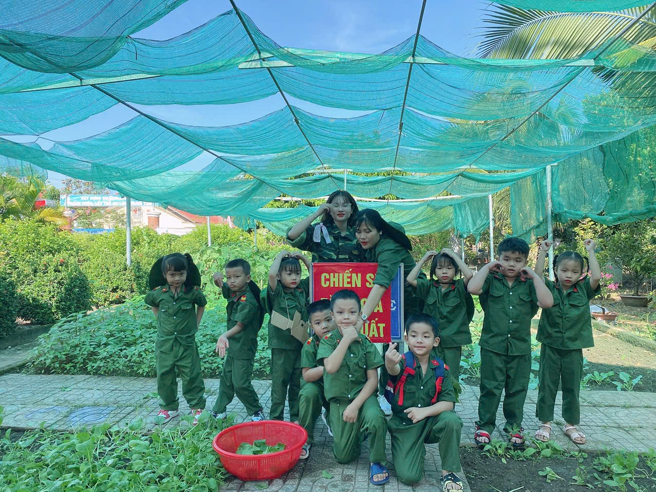 Cô và trò Trường Mầm non Tân Phú vô cùng hào hứng với hoạt động trải nghiệm "Bé tập làm chiến sĩ"