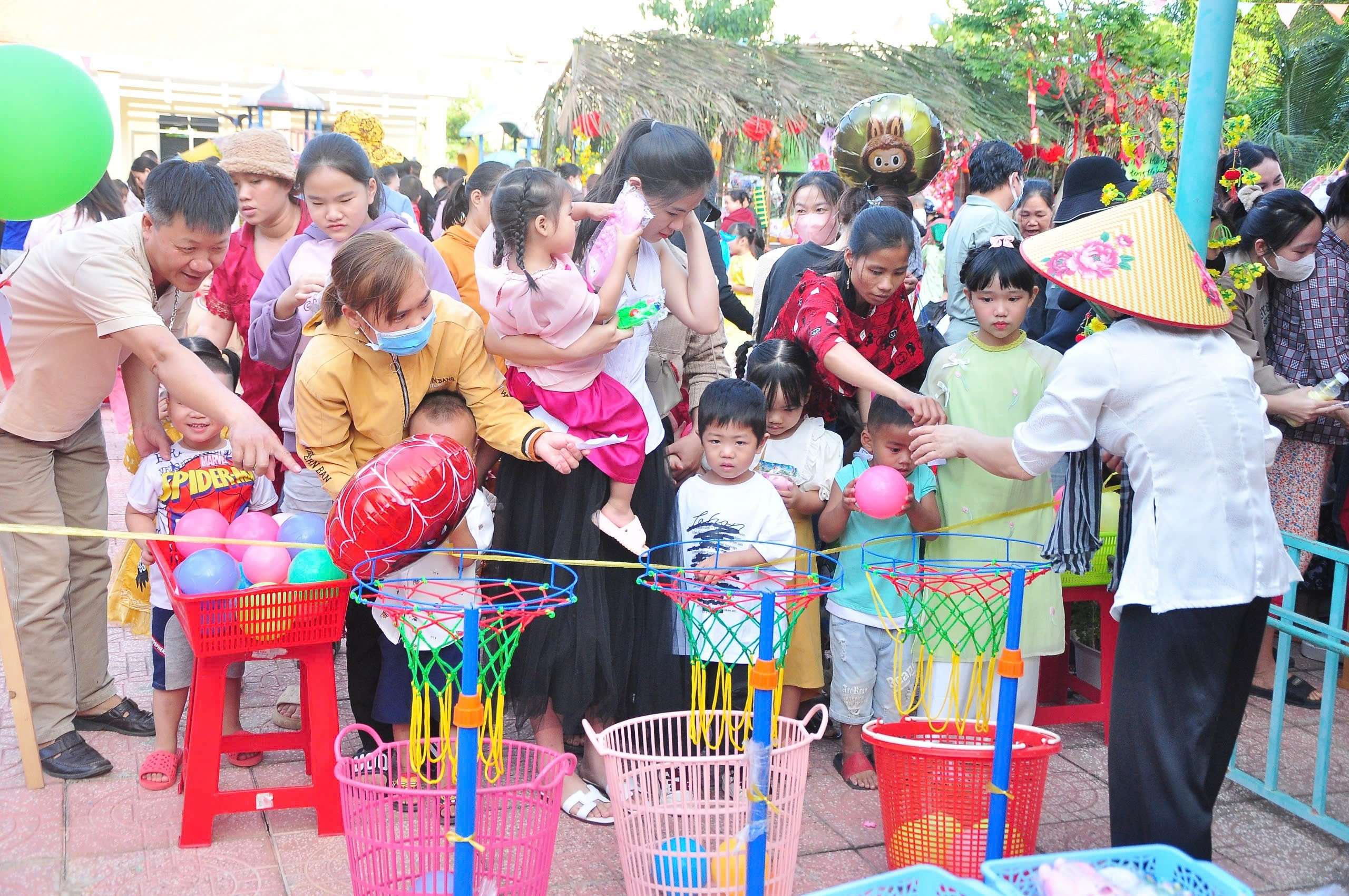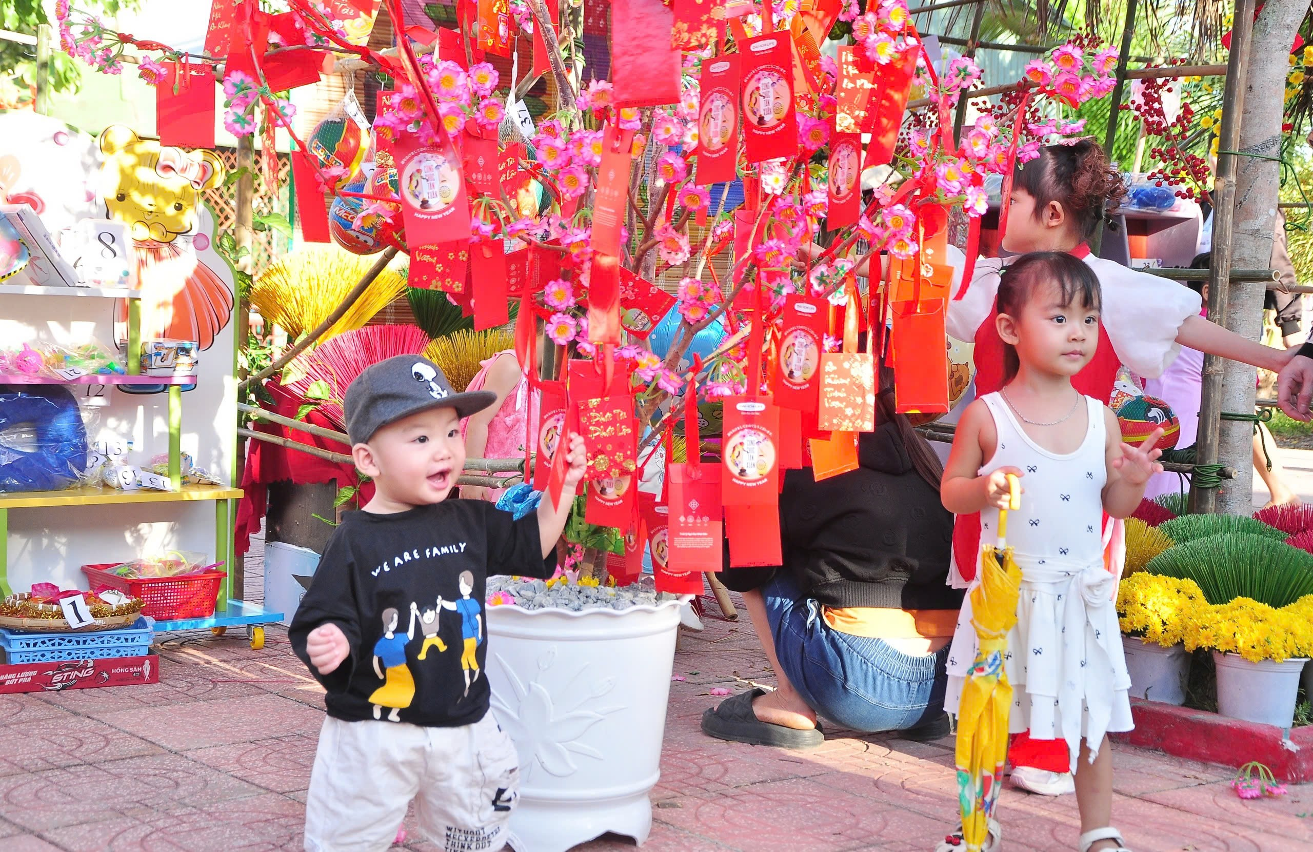 Trẻ rất hào hứng và thích thú với các hoạt động trải nghiệm "Chợ tết quê em"