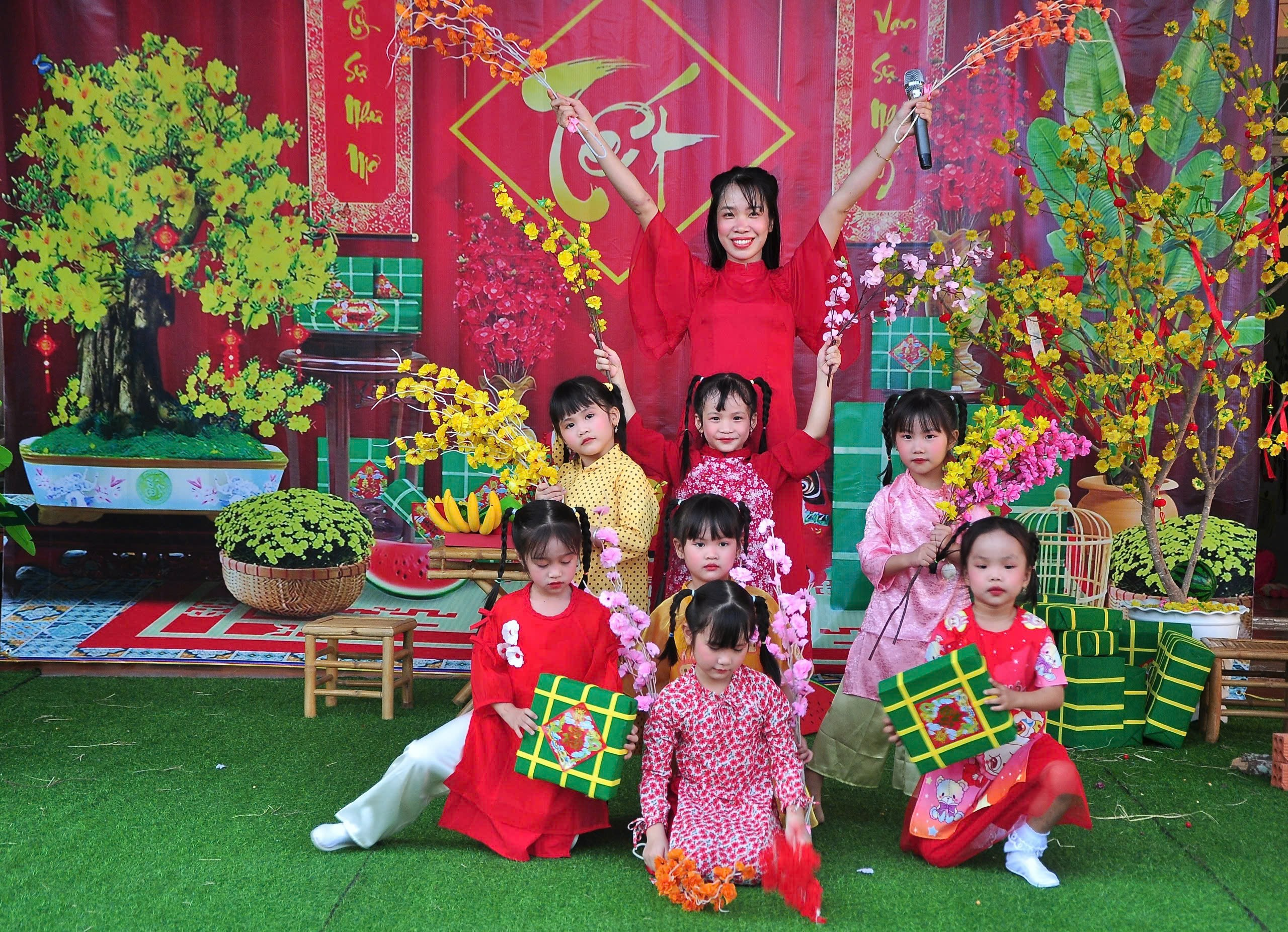 Tại đây, các em học sinh được thưởng thức các tiết mục văn nghệ Chào xuân, trực tiếp tham gia chuỗi các hoạt động trải nghiệm như: Tô tượng, Gói bánh chưng, tham gia các trò chơi dân, tham gia các gian hàng ẩm thực… Các bé đã rất hào hứng và thích thú với những trải nghiệm này. Đây là hoạt động ngoại khóa bổ ích, giúp các em có thêm những hiểu biết về ý nghĩa ngày Tết cổ truyền. Qua đó, các cô mong muốn vẽ lên bức tranh đầy đủ về một cái Tết trọn vị.