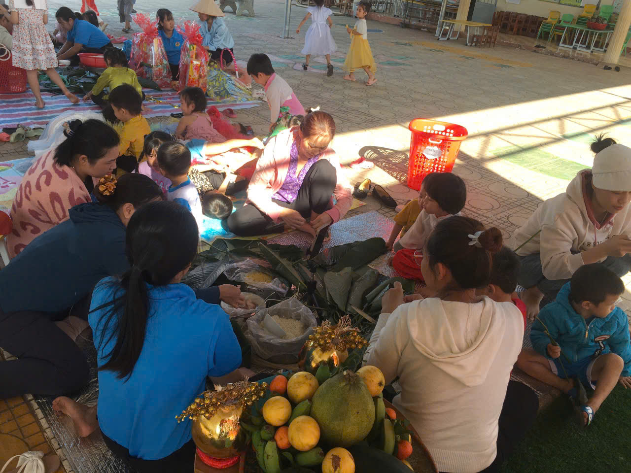 Với chủ đề “Bé vui đón tết”, Trường Mầm non Tân Hưng đã tổ chức cho các bé trải nghiệm gói bánh chưng, bánh tét, trang trí các loại cây hoa ngày tết, xếp mâm ngũ quả, viết câu đối, … với sự giúp đỡ của các giáo viên và phụ huynh trong nhà trường.