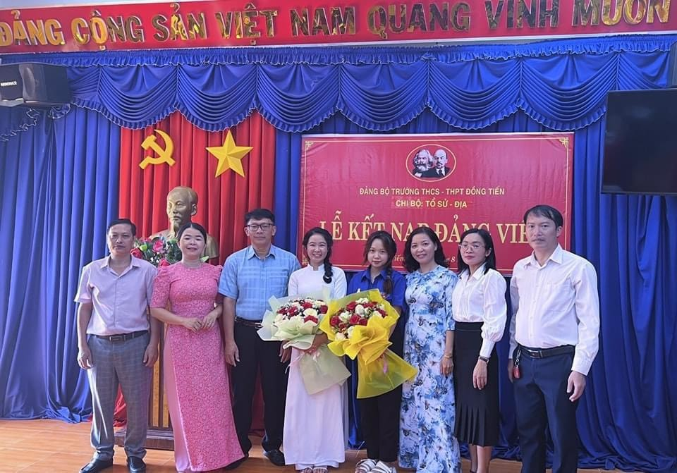 Nguyễn Thị Mỹ Duyên và Nguyễn Thị Na là hai học sinh đầu tiên của trường THCS & THPT Đồng Tiến được kết nạp vào Đảng