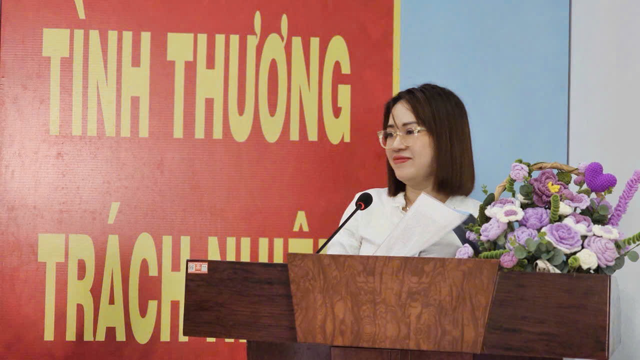 Bà Phạm Thị Phương Anh Đại diện ngân hàng Viet tin bank PGD Tân Tiến chia sẻ tại buổi Lễ
