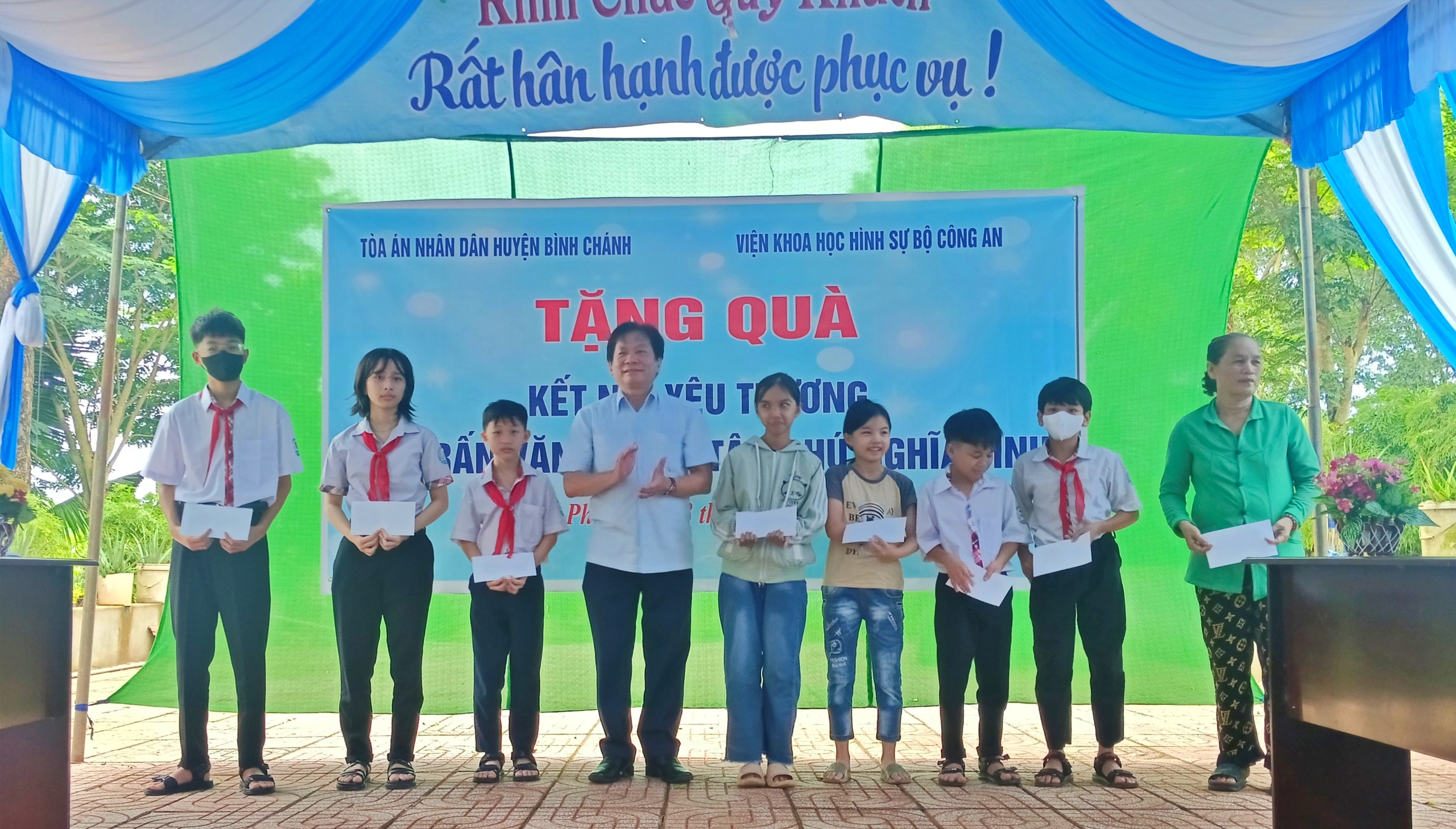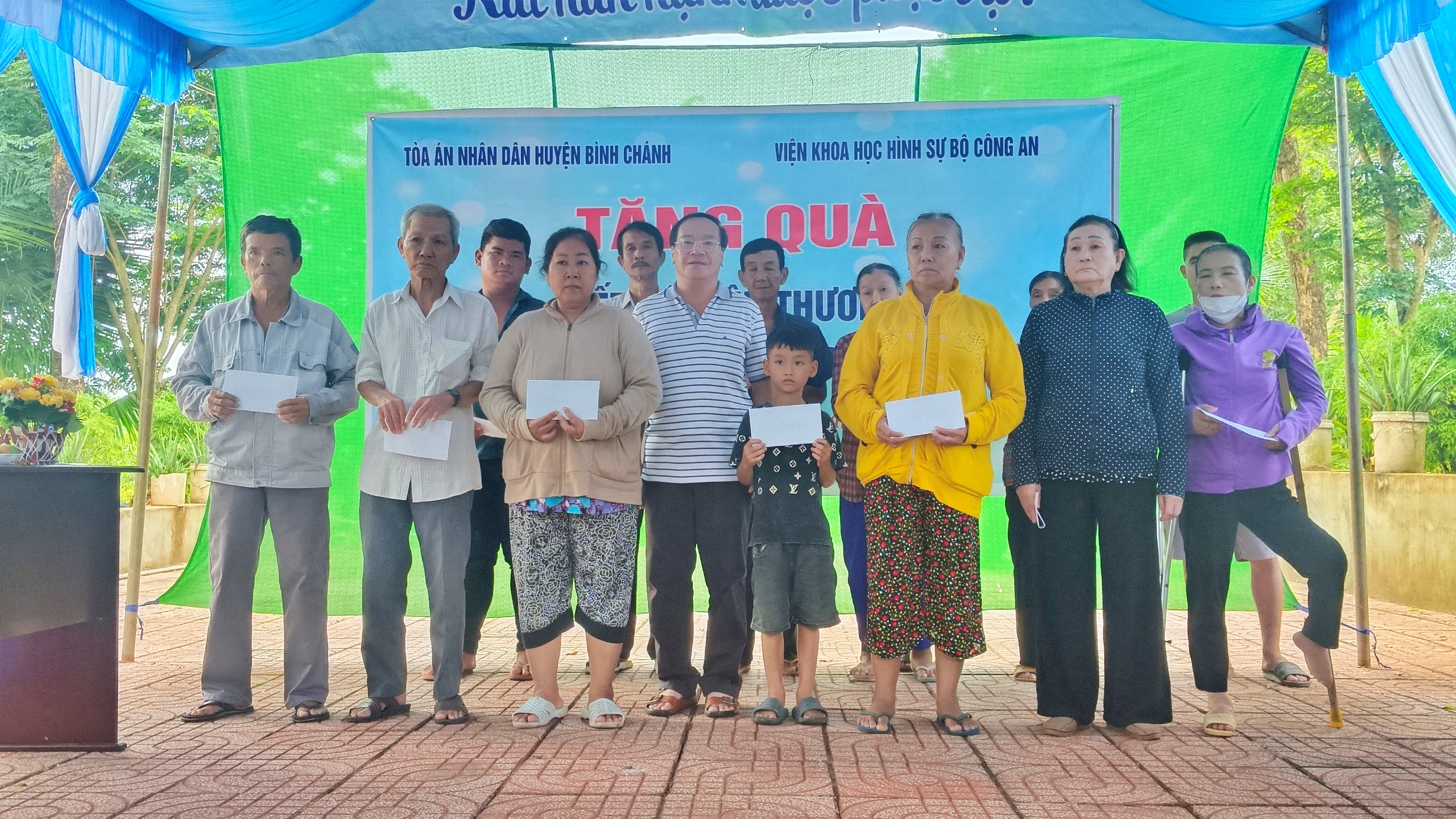 Tại đây, Tòa án nhân dân huyện Bình Chánh, thành phố Hồ Chí Minh và Viện Khoa học hình sự Bộ Công An đã tặng 70 phần quà cho các em học sinh và các hộ gia đình có hoàn cảnh khó khăn, tổng trị giá các phần quà là 35 triệu đồng, trong đó cá nhân ông Vũ Thanh Lâm, Phó chánh án Tòa án nhân dân huyện Bình Chánh tặng 10 phần, mỗi phần 500 nghìn đồng.