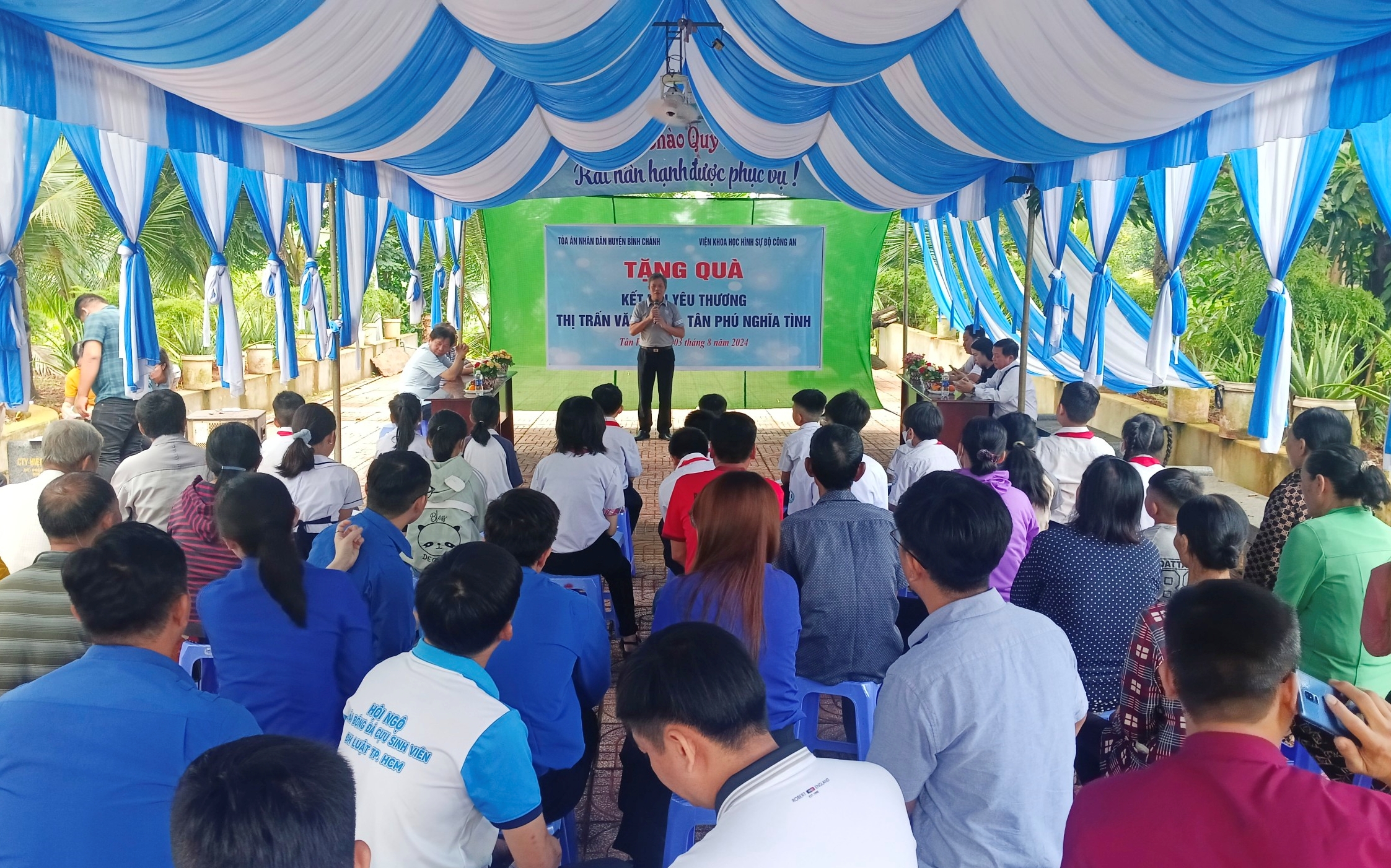 Tòa án nhân dân huyện Bình Chánh, thành phố Hồ Chí Minh và Viện Khoa học hình sự Bộ Công An vừa phối hợp với UBND thị trấn Tân Phú tổ chức chương trình kết nối yêu thương tặng quà cho học sinh và người dân khó khăn trên địa bàn thị trấn.