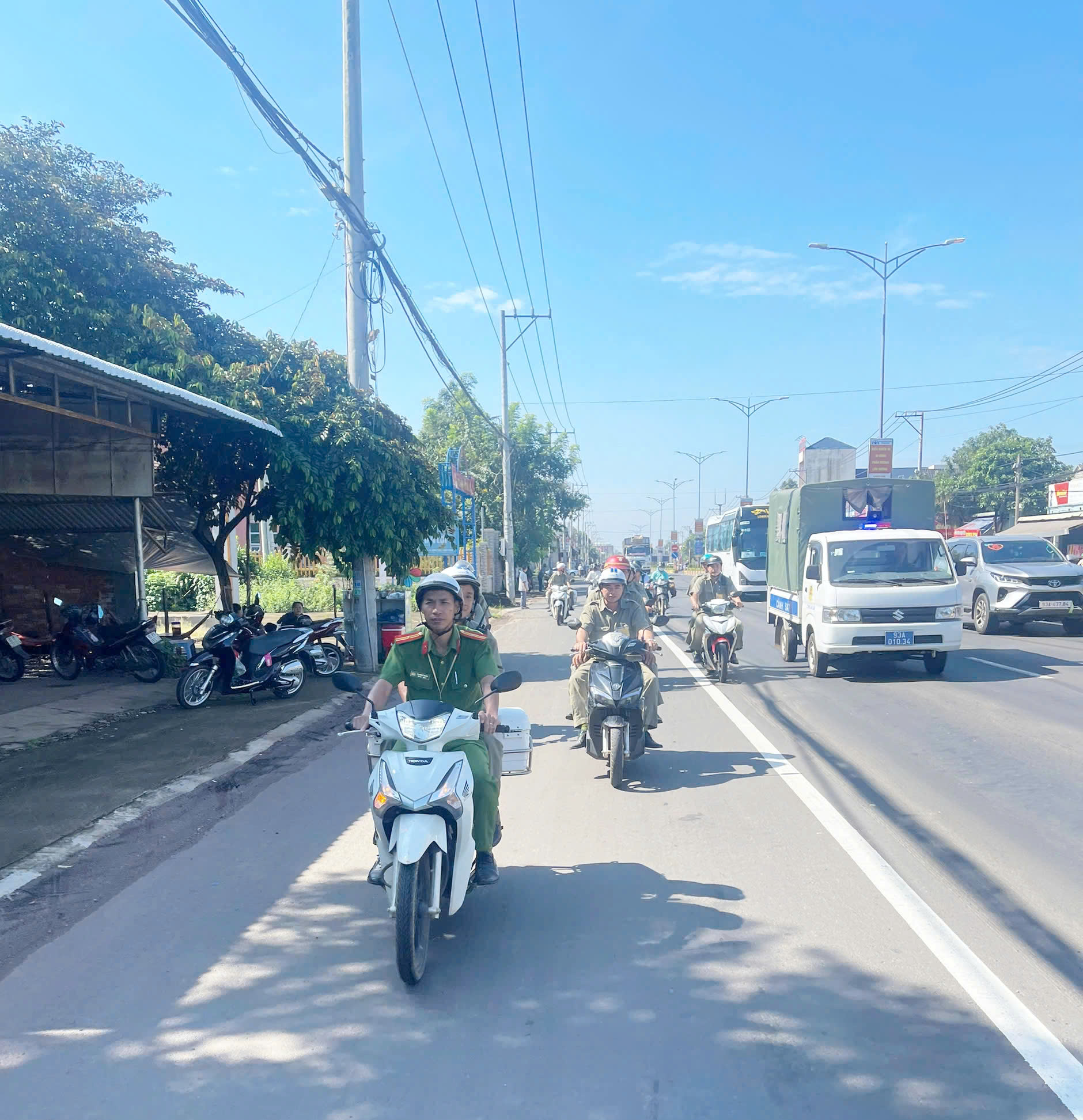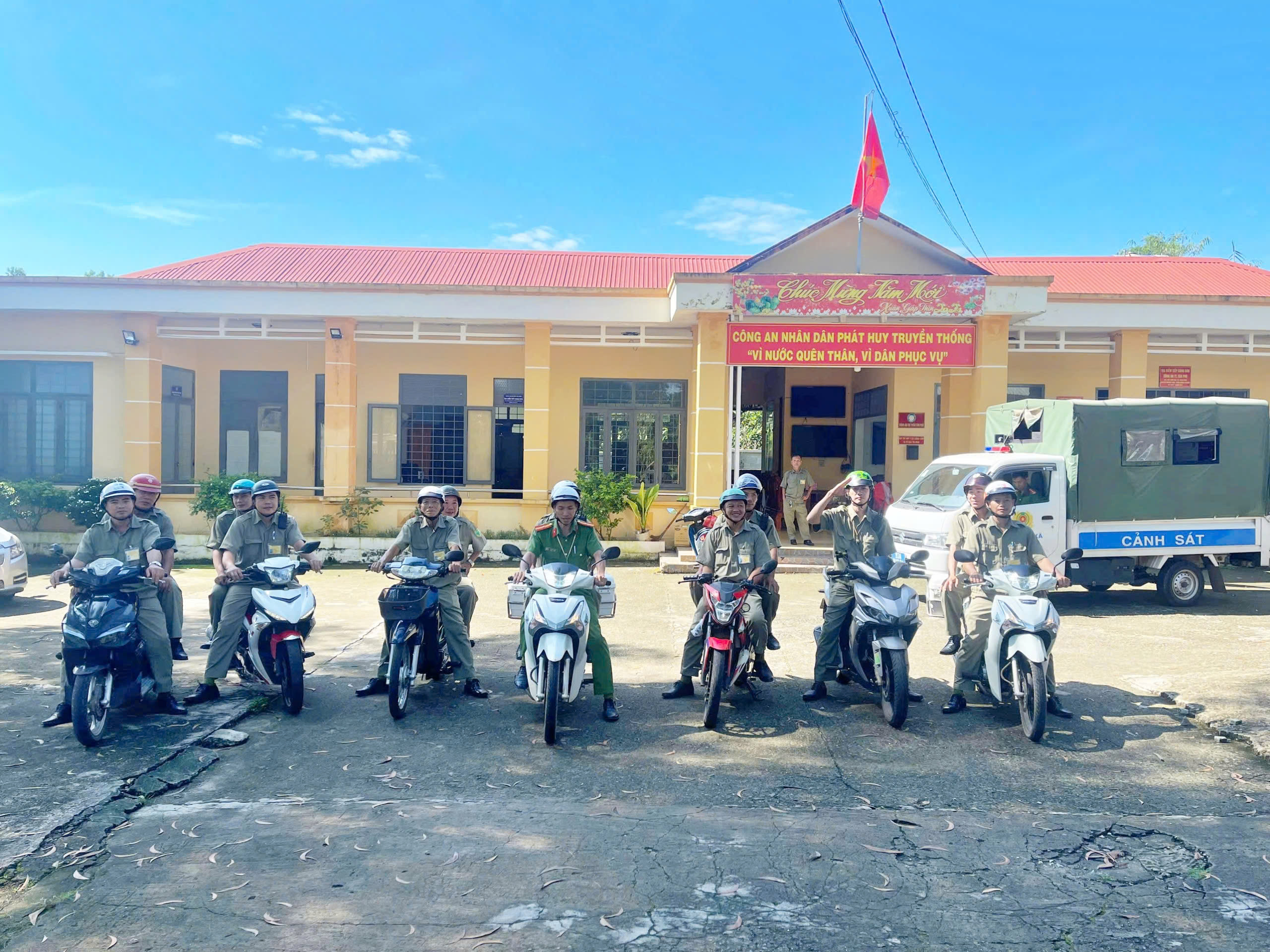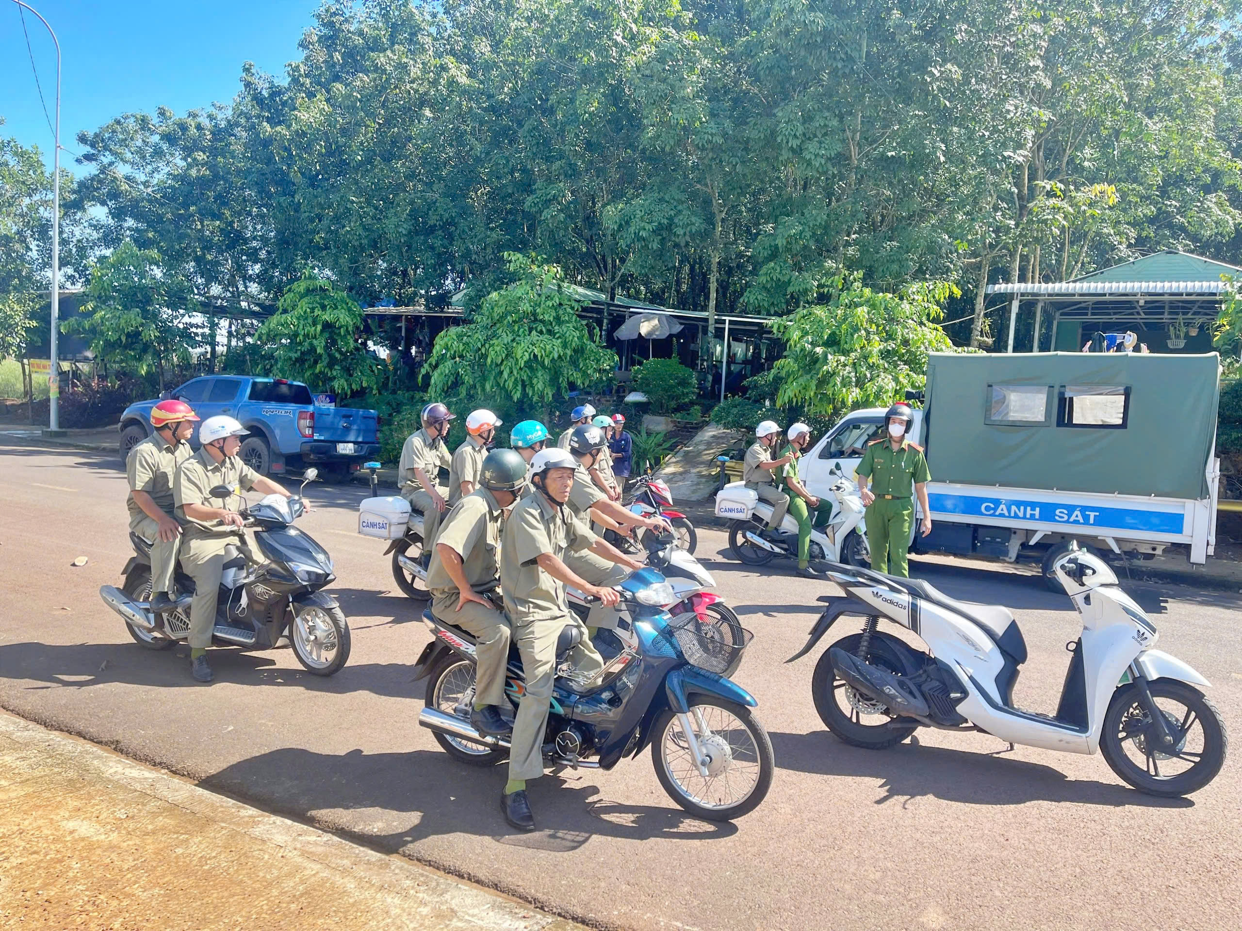 Lực lượng tổ ANTT cơ sở cùng lực lượng Công an thị trấn chuẩn bị tuần tra kiểm soát ANTT trên địa bàn