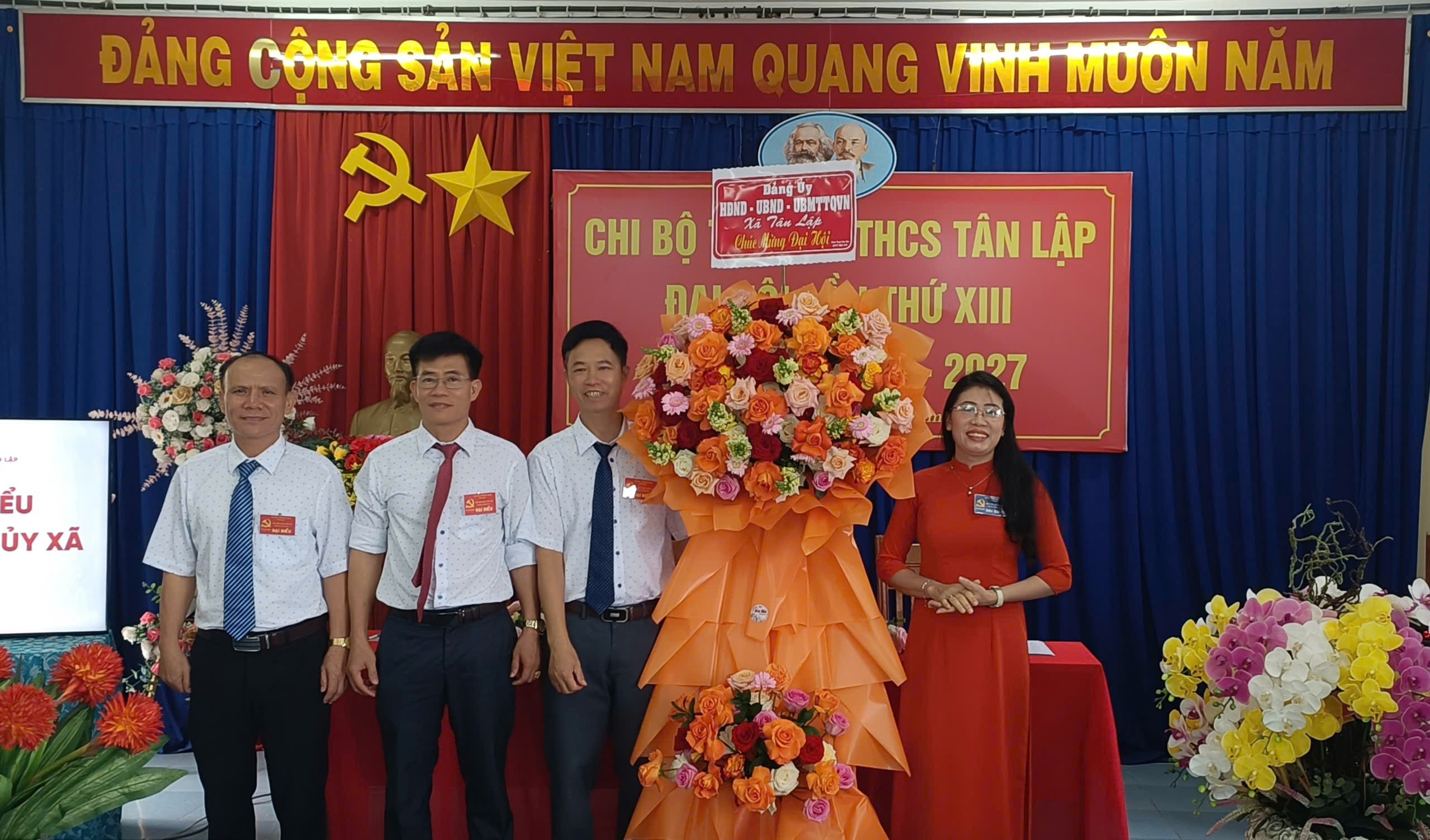 Chi bộ trường THCS Tân Lập có 24 đảng viên, nhiệm kỳ qua, Chi bộ đã chú trọng công tác giáo dục chính trị, tư tưởng, cải tiến công tác tổ chức và lề lối làm việc. Đặc biệt, chi bộ đã tổ chức sinh hoạt chuyên đề gắn với sinh hoạt chính trị “Giữ trọn lời thề đảng viên”; thực hiện chuyên đề “Học tập và làm theo tư tưởng đạo đức phong cách Hồ Chí Minh”, sinh hoạt chuyên đề “Dân vận khéo”, xây dựng “Chi bộ 4 tốt, đảng viên 4 tốt” …