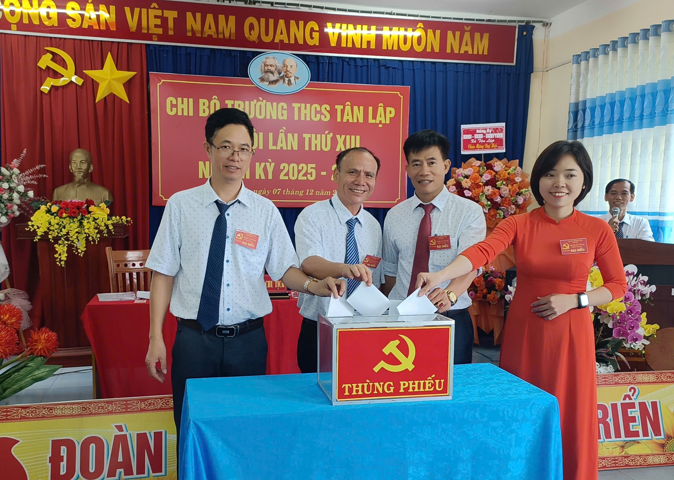 Với tinh thần dân chủ, Đại hội đã bầu Chi ủy gồm 5 đồng chí, bầu 7 Đại biểu dự Đại hội cấp trên, đồng chí Nguyễn Hoàn được tín nhiệm bầu là Bí thư chi bộ Trường THCS Tân Lập nhiệm kỳ 2025-2027.