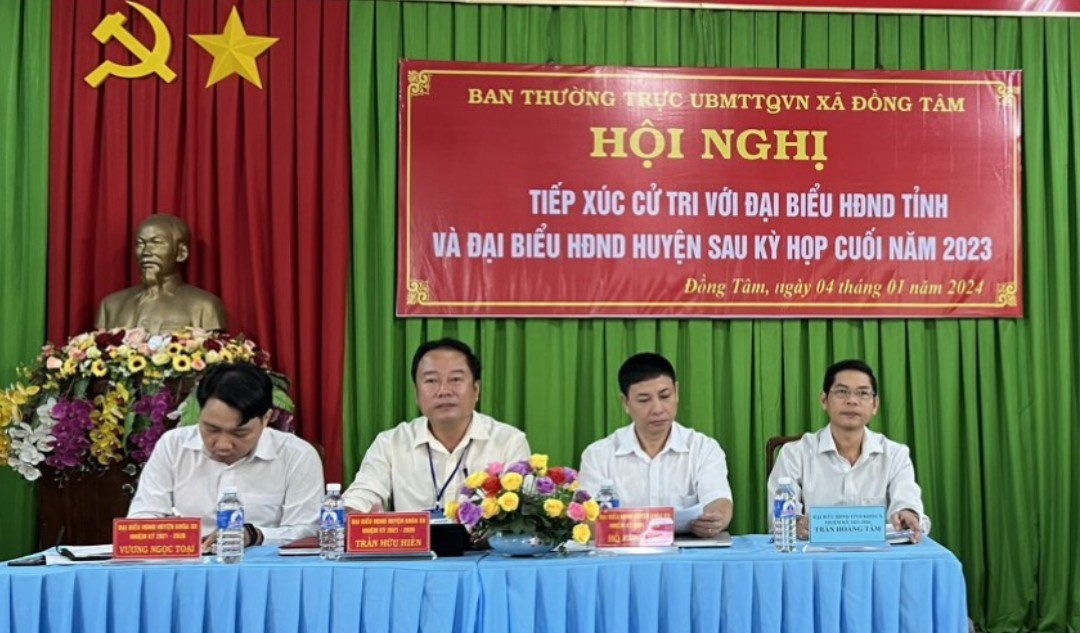 Sáng 4-1-2024, Đại biểu HĐND tỉnh Trần Hoàng Tâm và tổ đại biểu HĐND huyện Đồng Phú đã tiếp xúc với cử tri xã Đồng Tâm sau kỳ họp thứ 12, HĐND tỉnh, Kỳ họp thứ 9, HĐND huyện, nhiệm kỳ 2021-2026. Tham gia buổi tiếp xúc có lãnh đạo Huyện ủy, HĐND, UBND, Ủy ban BMTTQ, các ban, ngành, đoàn thể huyện, lãnh đạo xã Đồng Tâm và đông đảo cử tri trên địa bàn xã.