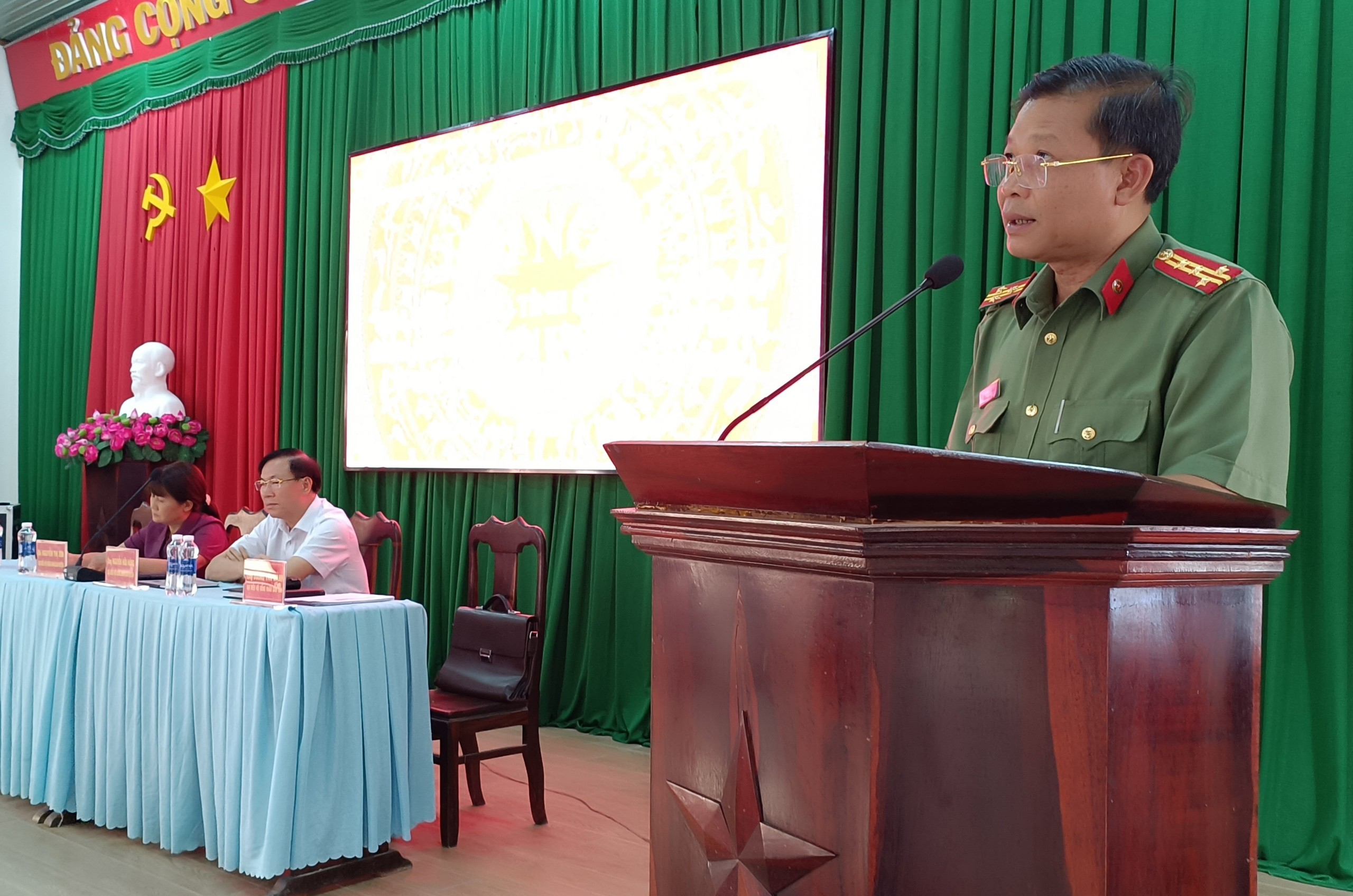 Đại tá Dương Văn Mạnh-Phó giám đốc Công an tỉnh phát biểu tại hội nghị