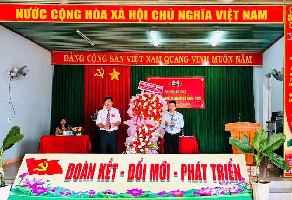 Lãnh đạo Đảng ủy Tân Tiến tặng hoa chúc mừng đại hội