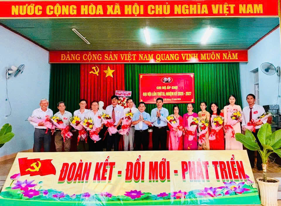 Chi bộ Ấp Chợ hiện có 39 đảng viên, nhiệm kỳ qua, với sự quyết tâm đoàn kết của đảng viên và sự lãnh đạo của Chi bộ, đời sống vật chất, tinh thần Nhân dân trong ấp được nâng lên rõ nét. Giao thông nông thôn thông suốt, cảnh quan môi trường sạch đẹp, tình hình an ninh chính trị - trật tự an toàn xã hội được giữ vững, các chỉ tiêu vận động đều thực hiện đạt kết quả cao. Các chủ trương, nghị quyết của Đảng đều được triển khai đến đảng viên trong Chi bộ và Nhân dân. Nổi bật, công tác an sinh xã hội luôn được chú trọng và quan tâm, đến nay ấp không còn hộ nghèo. Tỷ lệ hộ sử dụng điện đạt 100%; Tỷ lệ hộ sử dụng nước hợp vệ sinh đạt 100%. Năm 2023 ấp được UBND huyện Công nhận là khu dân cư kiểu mẫu; Tỷ lệ hộ đạt gia đình văn hoá đạt 98%. Khu dân cư đạt chuẩn văn hóa 5 năm liền.