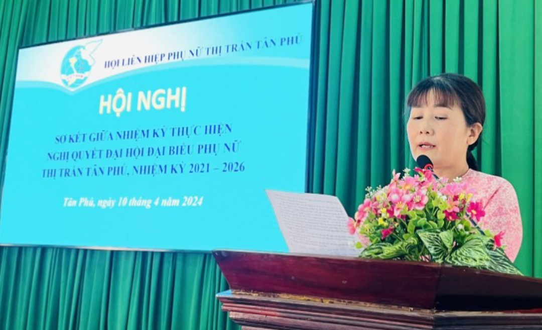 Sáng 10-4-2024, Hội LHPN thị trấn Tân Phú đã tổ chức hội nghị sơ kết giữa nhiệm kỳ thực hiện Nghị quyết Đại hội đại biểu Phụ nữ thị trấn Tân Phú, nhiệm kỳ 2021 – 2026, đây là hội nghị điểm cấp tỉnh. Dự hội nghị có Phó chủ tịch Hội LHPN tỉnh Bình Phước Lê Thị Thái Thanh, Chủ tịch Hội LHPN huyện Đồng Phú Nguyễn Thị Xim cùng các đồng chí trong BTV, BCH hội LHPN huyện nhiệm kỳ 2021 -2026, lãnh đạo thị trấn Tân Phú và 60 cán bộ, hội viên, phụ nữ tiêu biểu trên địa bàn thị trấn Tân Phú.