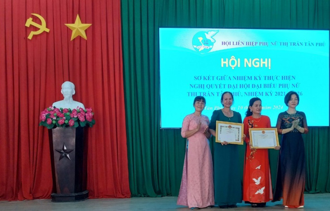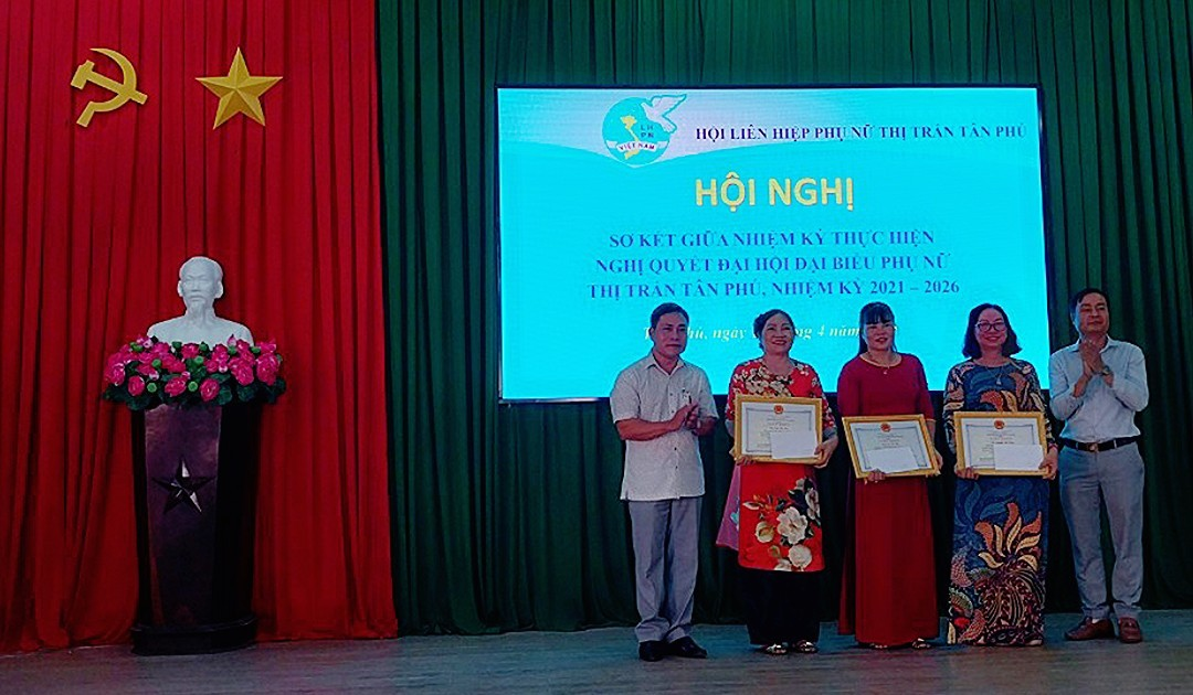 Nhân dịp này, Hội LHPN thị trấn Tân Phú tặng giấy khen 2 tập thể, 3 cá nhân đã có nhiều đóng góp cho phong trào phụ nữ nửa nhiệm kỳ qua.