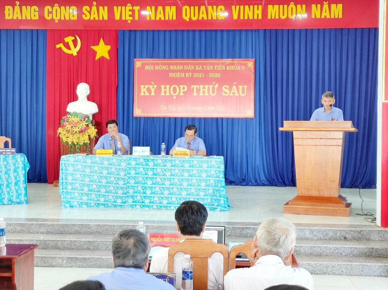 Sáng ngày 29-12-2023, HĐND xã Tân Tiến đã tổ chức Kỳ họp thứ 6, khóa V, nhiệm kỳ 2021-2026 nhằm đánh giá kết quả hoạt động năm 2023 và đề ra phương hướng, nhiệm vụ năm 2024. Dự kỳ họp có ông Nguyễn Đức Việt Tựu - HUV, Phó trưởng Ban tuyên giáo, Tổ đại biểu HĐND huyện ứng cử tại xã, lãnh đạo Đảng ủy, HĐND, UBND, UBMTTQVN xã.