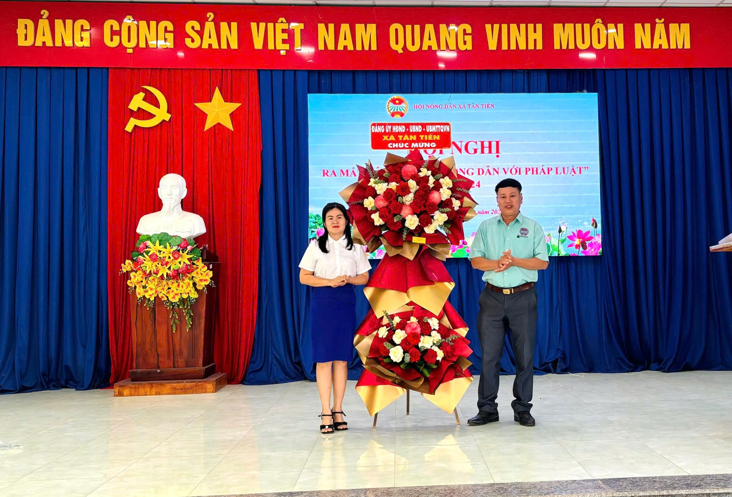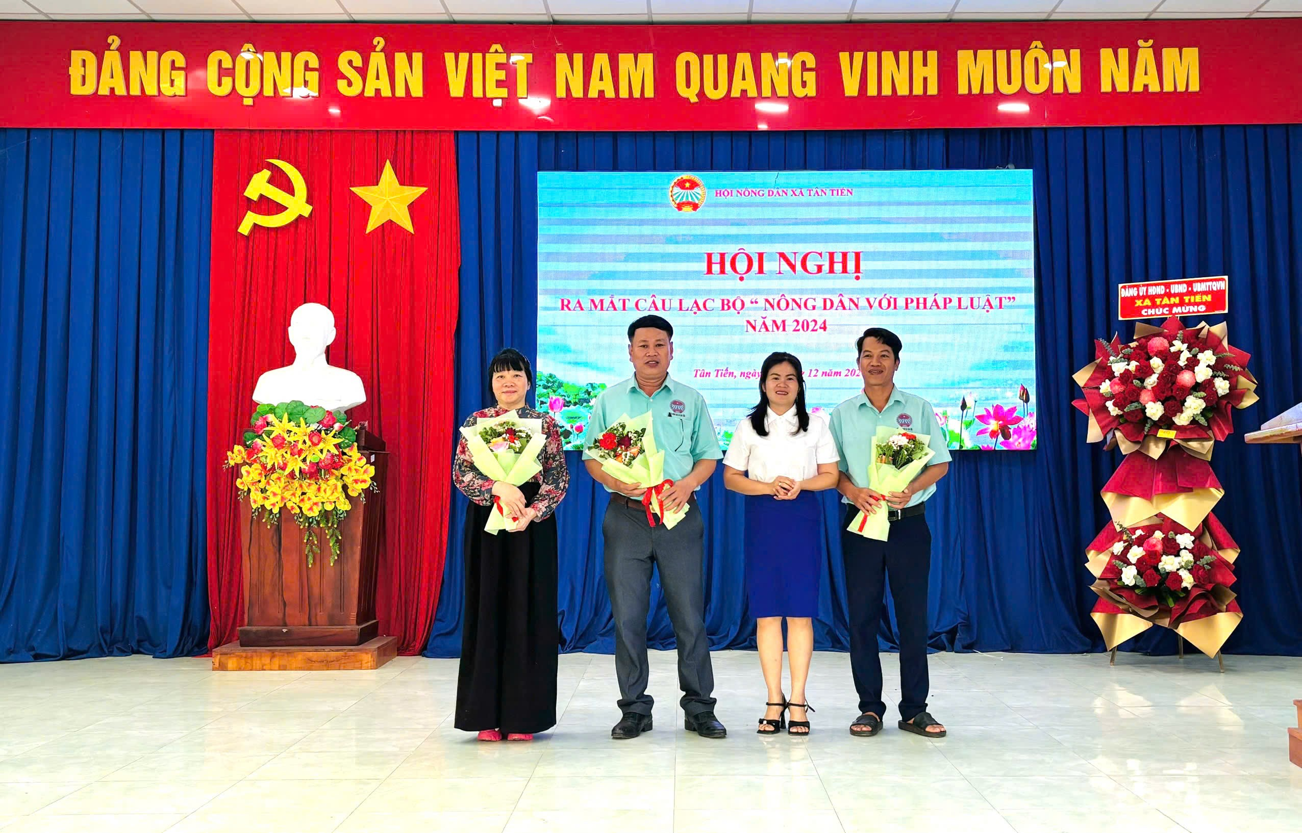 Lãnh đạo Đảng ủy-HĐND- UBND-UBMTTQ xã tặng hoa chúc mừng CLB “Nông dân với pháp luật” được thành lập