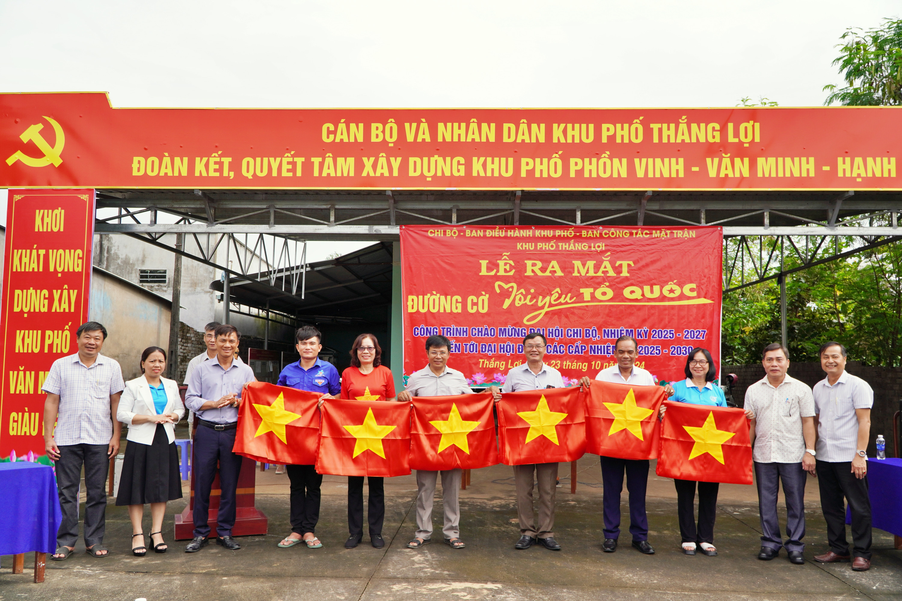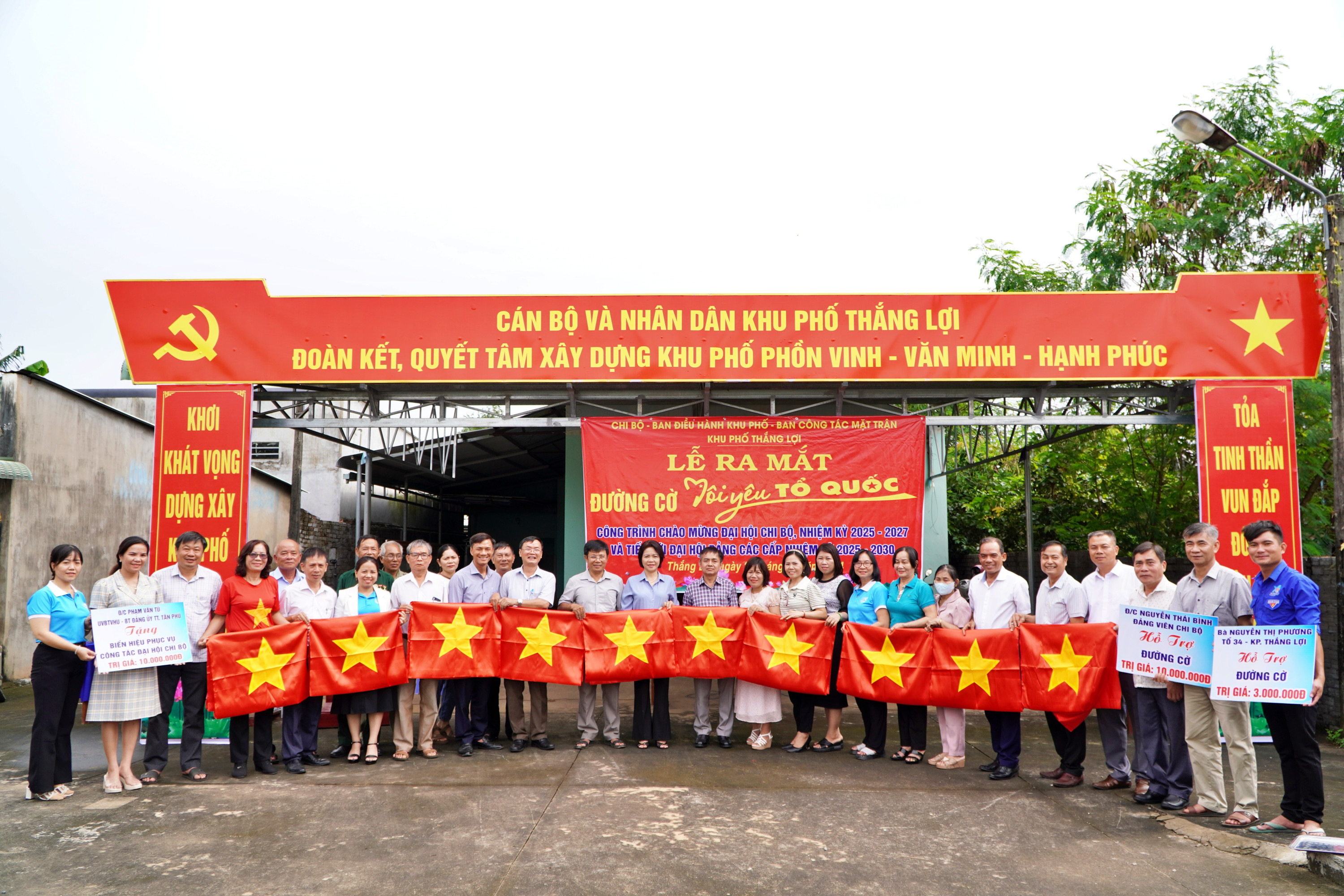 Công trình đường cờ “Tôi yêu tổ quốc” triển khai tại tổ 27B, Khu phố Thắng Lợi, với 40 cột cờ cắm dọc 2 bên tuyến đường được treo xen kẻ giữa cờ Đảng và cờ tổ quốc. Bên cạnh đó, Ban điều hành khu dân cư còn tiến hành kẻ lại vạch đường, sơn tường rào, trang trí, làm mới các khẩu hiệu ở nhà văn hóa. Tổng kinh phí công trình khoảng 35 triệu đồng do Ban điều hành khu dân cư vận động các mạnh thường quân trên địa bàn hỗ trợ.