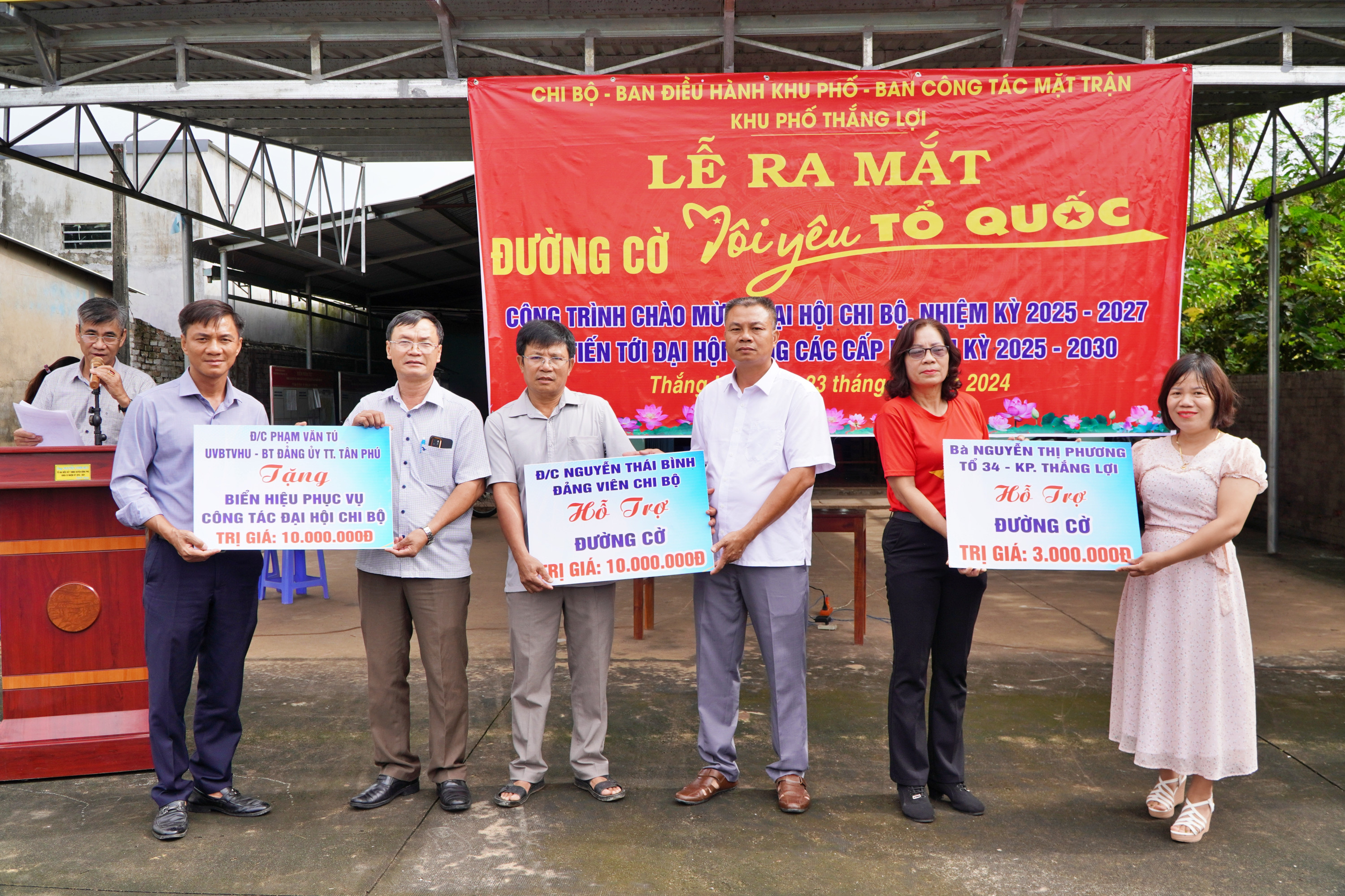 Phát biểu tại buổi lễ, Bí thư Đảng ủy thị trấn Phạm Văn Tú cho biết, Khu phố Thắng Lợi được Đảng ủy thị trấn chọn tổ chức đại hội điểm cấp chi bộ nhiệm kỳ 2025-2027, nên việc triển khai công trình Đường cờ “Tôi yêu tổ quốc” có ý nghĩa hết sức quan trọng. Đây vừa là công trình chào mừng Đại hội Đảng các cấp, vừa góp phần tuyên truyền đến Nhân dân và các em học sinh tình yêu quê hương, đất nước, yêu lá cờ đỏ sao vàng thiêng liêng của tổ quốc. Từ đó cùng nhau thi đua lao động và học tập, chung tây xây dựng thị trấn Tân Phú ngày một văn minh, hiện đại.