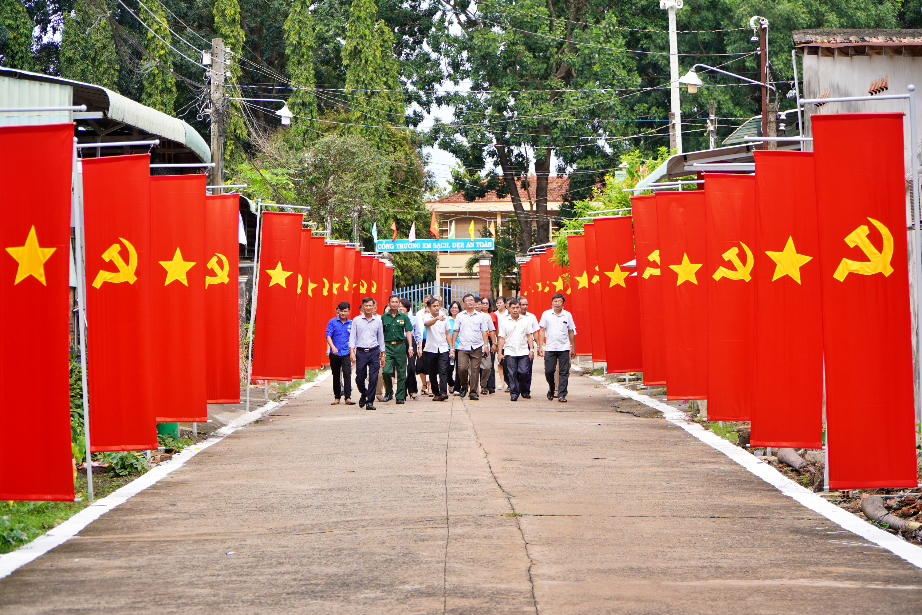 Lãnh đạo thị trấn tham quan tuyến đường và chụp hình lưu niệm
