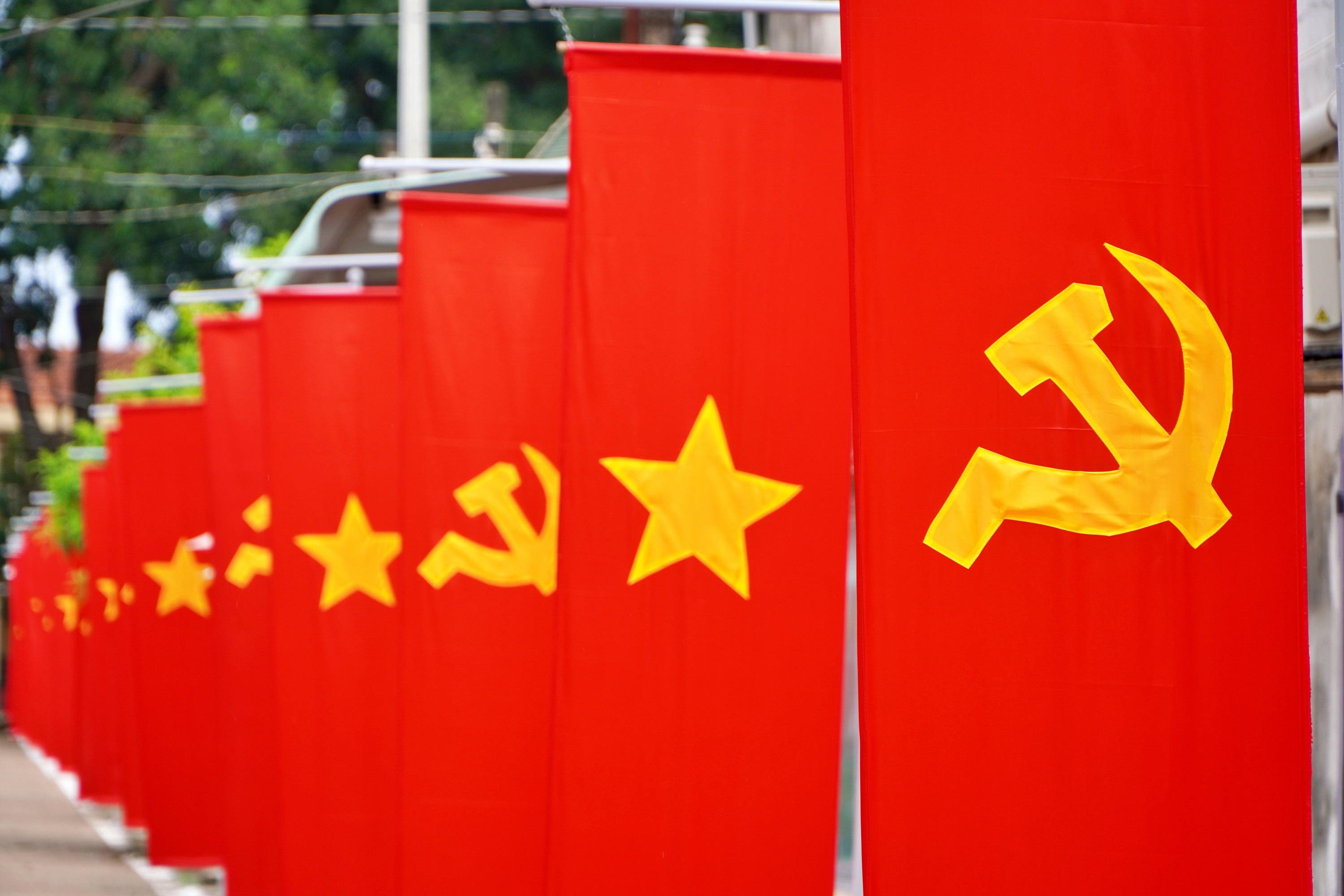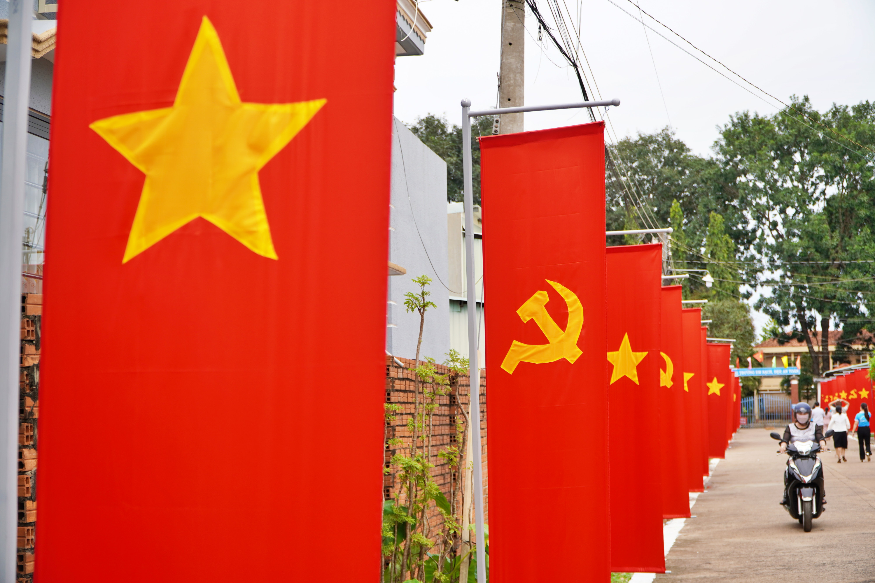 Tuyến đường được trang hoàng rực rỡ cờ Đảng và cờ Tổ quốc