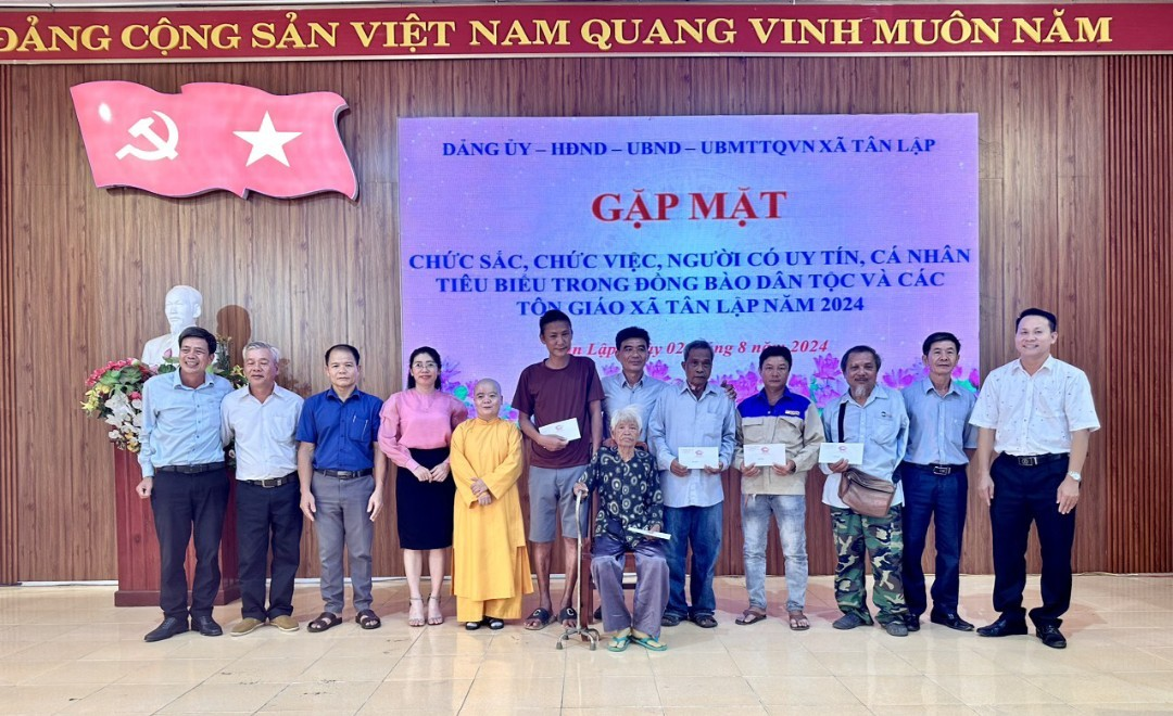 Tân Lập hiện có 10 dân tộc anh em cùng chung sống, với 2.300 hộ/10.652 khẩu, trong đó đồng bào dân tộc thiểu số là 120 hộ. Xã có 02 tôn giáo chính: Phật giáo và Công giáo, trong đó có 4 chức sắc, 18 chức việc, 3.422 tín đồ, chiếm khoảng 32% dân số toàn xã. Thời gian qua, chức sắc, chức việc tôn giáo, người có uy tín trong đồng bào DTTS đã phát huy tốt vai trò trong việc tuyên truyền, vận động tín đồ tôn giáo, đồng bào DTTS chấp hành tốt chủ trương, đường lối của Đảng, chính sách pháp luật của Nhà nước, tích cực tham gia các phong trào thi đua yêu nước, các cuộc vận động tại địa phương, … từ đó tạo sự tin tưởng, gắn bó giữa cấp ủy, chính quyền, MTTQ và các đoàn thể chính trị - xã hội, góp phần phát triển kinh tế, văn hóa, xã hội ở địa phương.