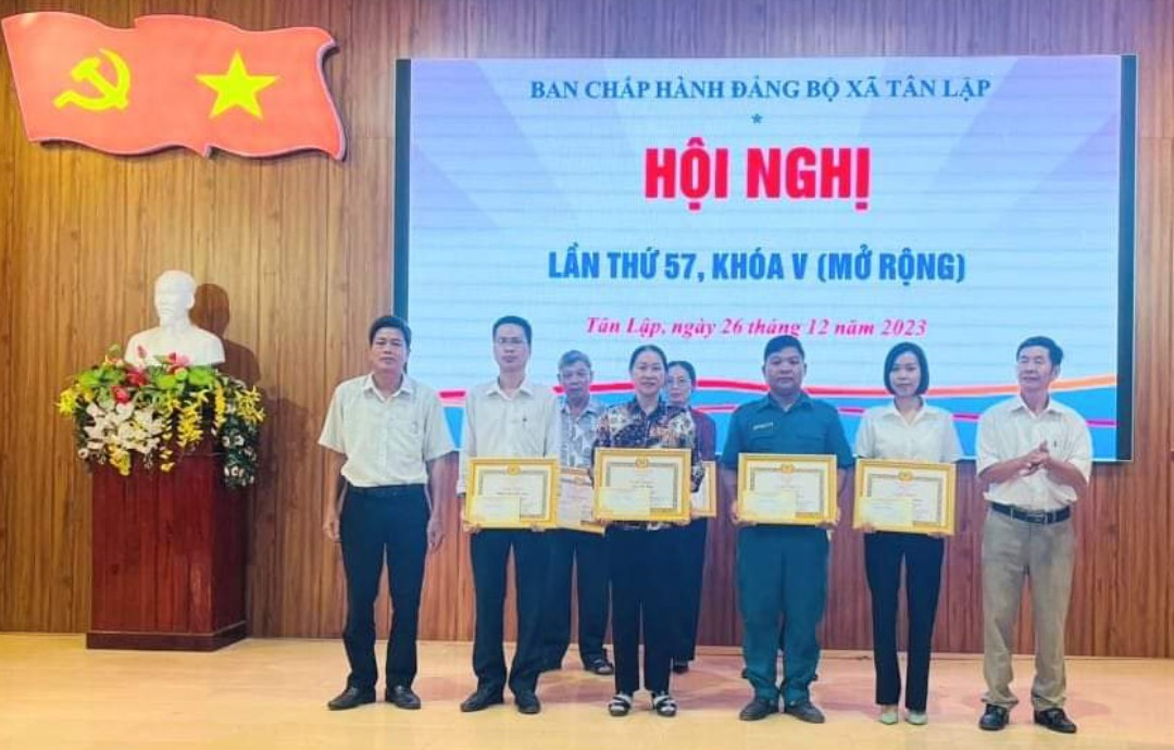Nhân dịp này, Đảng ủy xã Tân Lập đã tặng giấy khen cho 7 tập thể và 5 cá nhân hoàn thành xuất sắc nhiệm vụ năm 2023.