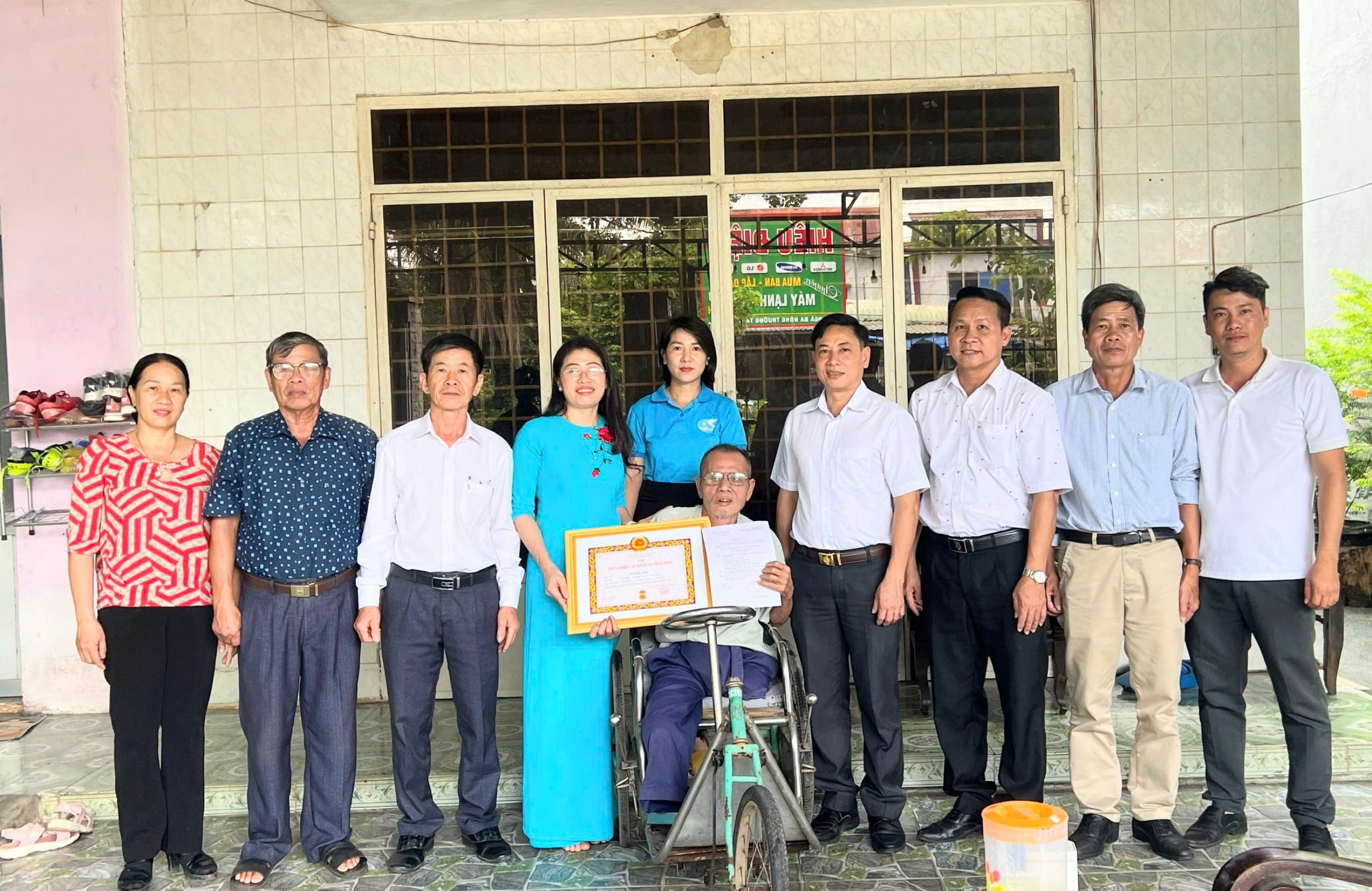 Lãnh đạo huyện và xã Tân Lập trao huy hiệu 45 tuổi đảng cho đồng chí Vũ Xuân Đức