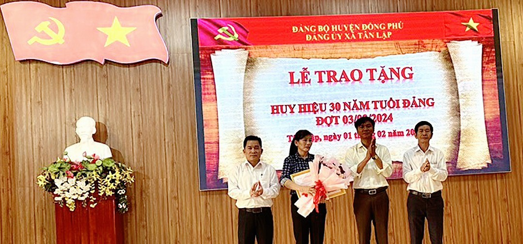 Tại buổi lễ, thừa ủy quyền của Tỉnh ủy Bình Phước, UVBTV Huyện ủy, Bí thư Đảng ủy xã Tân Lập Phạm Văn Tú đã trao quyết định tặng Huy hiệu 30 năm tuổi Đảng cho đảng viên Dương Thị Thúy Diền, sinh năm 1972, hiện đang sinh hoạt tại chi bộ ấp 2.