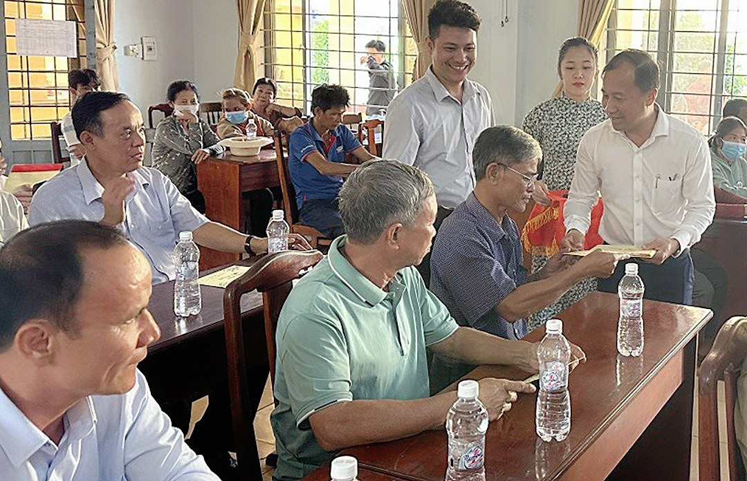 Tỉnh ủy viên, Bí thư Huyện ủy Nguyễn Quốc Dũng tặng quà cho các đảng viên cao tuổi Đảng