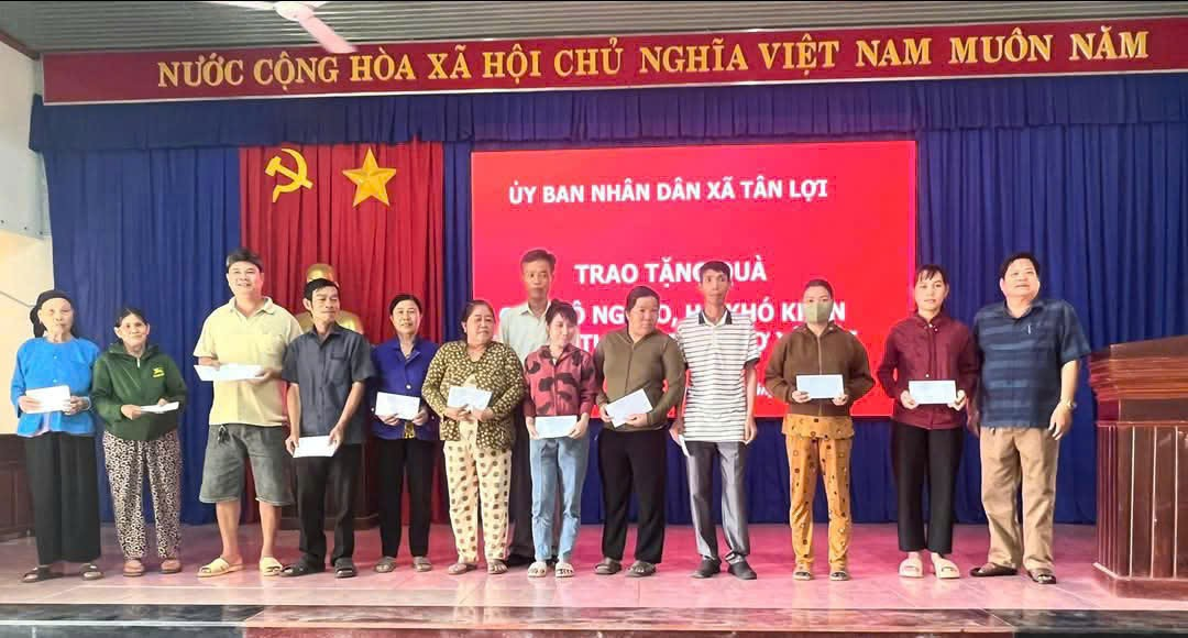 Ngày 4-4-2025, UBND xã Tân Lợi đã tổ chức lễ trao tặng quà cho hộ nghèo, khó khăn, đối tượng Bảo trở xã hội trên địa bàn xã. Tham dự buổi lễ có Huyện ủy viên, Bí thư Đảng ủy xã Lê Tiến Định; Chủ tịch UBND xã Hà Trung Tuấn; đại diện các ban, ngành đoàn thể xã.