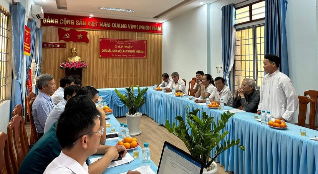 Trên tinh thần đoàn kết, cởi mở, các chức sắc, chức việc, tôn giáo đã trao đổi tình hình hoạt động của các tôn giáo trong thời gian qua. Đồng thời, gửi lời cảm ơn cấp ủy, chính quyền, MTTQ và các đoàn thể thị trấn đã quan tâm, tạo điều kiện cho các tôn giáo hoạt động. Bên cạnh đó, các chức sắc, chức việc cũng đề xuất với cấp ủy, chính quyền tạo điều kiện cấp giấy chứng nhận quyền sử dụng đất đứng tên tổ chức tôn giáo cho một số cơ sở thờ tự như: chùa Phật Đà, đền thờ Thánh Mẫu Nguyễn Thị Bích Châu hiện đang đứng tên cá nhân.
