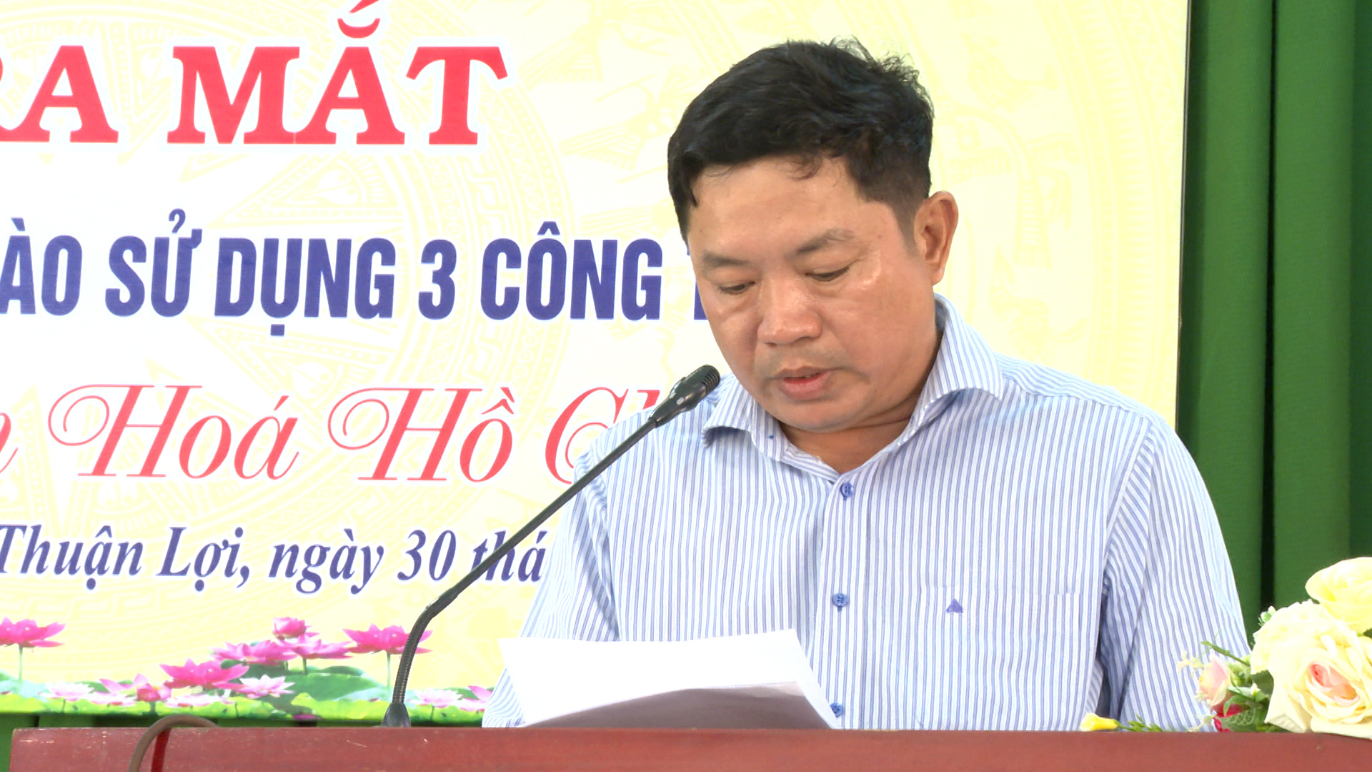 Bí thư Đảng ủy xã Thuận Lợi Mai Xuân Long báo cáo kết quả xây dựng 3 công trình
