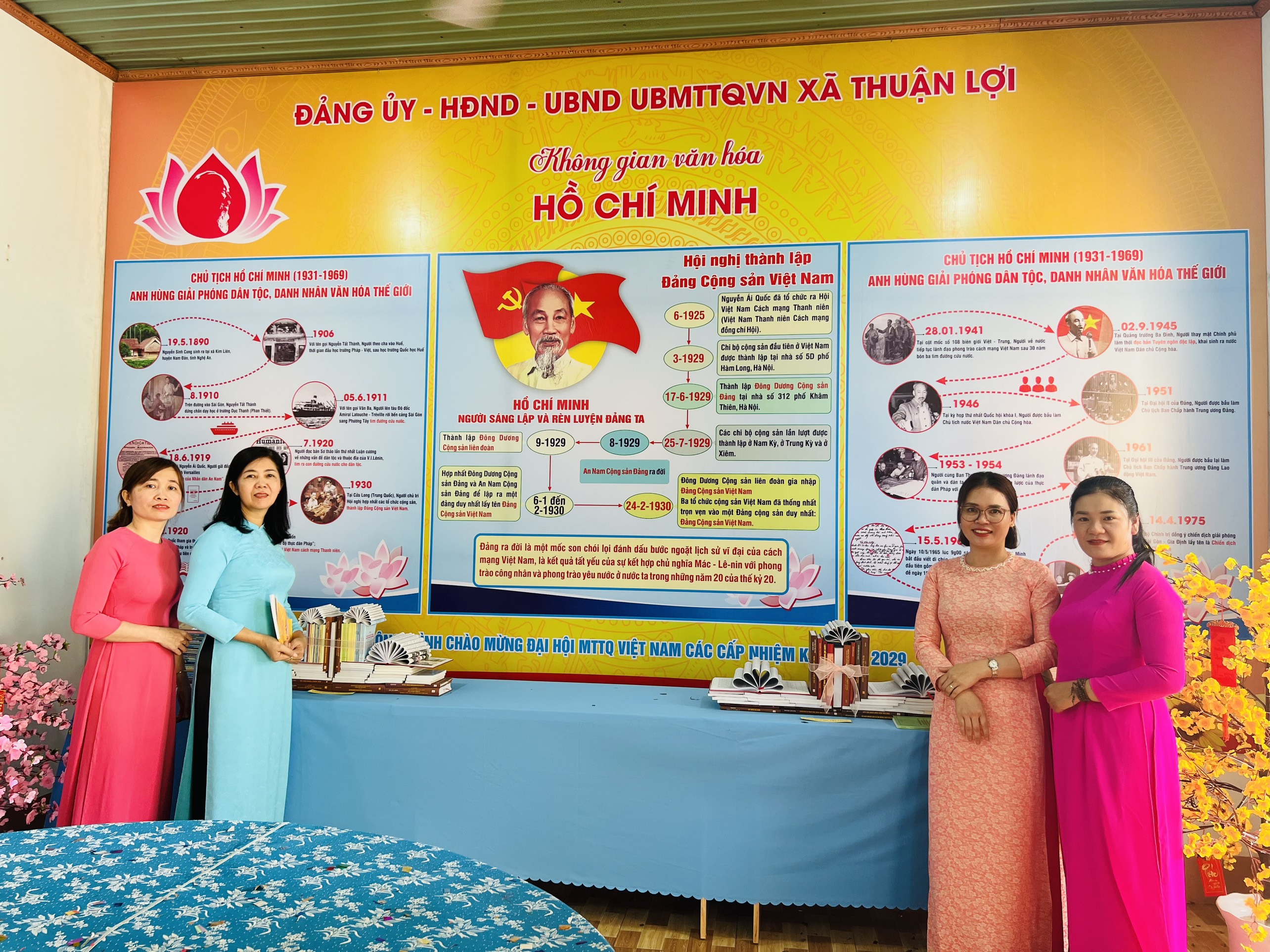 Bên cạnh đó, xã vận động Thư Viện tỉnh, các nhà sách hỗ trợ khoảng 300 đầu sách và tư liệu, đầu tư thiết kế, xây dựng không gian đọc – không gian văn hoá Hồ Chí Minh với tổng trị giá trên 40 triệu đồng. Ngoài ra, Đảng uỷ còn vận động Chi bộ và Đoàn Thanh niên Văn phòng đăng ký đất đai huyện; Công ty THHH một thành viên Phú Quý và một số nguồn lực khác được gần 30 triệu đồng để xây dựng Không Gian văn hoá Hồ Chí Minh trong vùng đồng bào dân tộc S’tiêng ở ấp Thuận Tiến”.