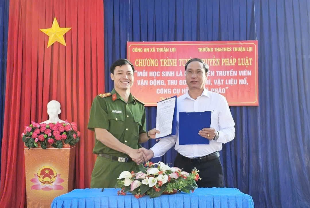 Công an xã ký kết với Trường TH&THCS Thuận Lợi
