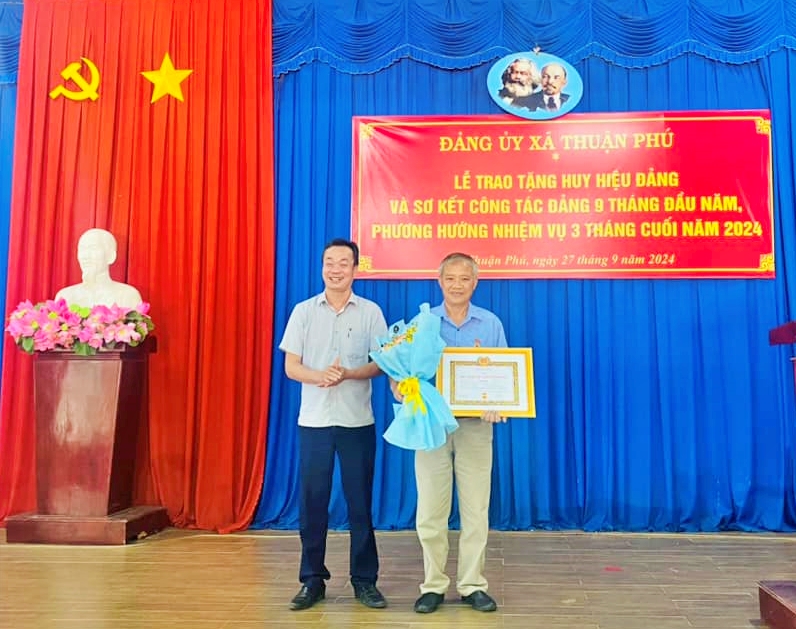 Trong dịp này, Đảng bộ xã đã trao tặng Huy hiệu 55 năm tuổi Đảng cho đồng chí Trần Thị Tuyết, sinh hoạt tại Chi bộ ấp Thuận Hải và huy hiệu 40 năm tuổi Đảng cho đồng chí Lê Sỹ Lực, sinh hoạt tại Chi bộ ấp Thuận Phú 2.