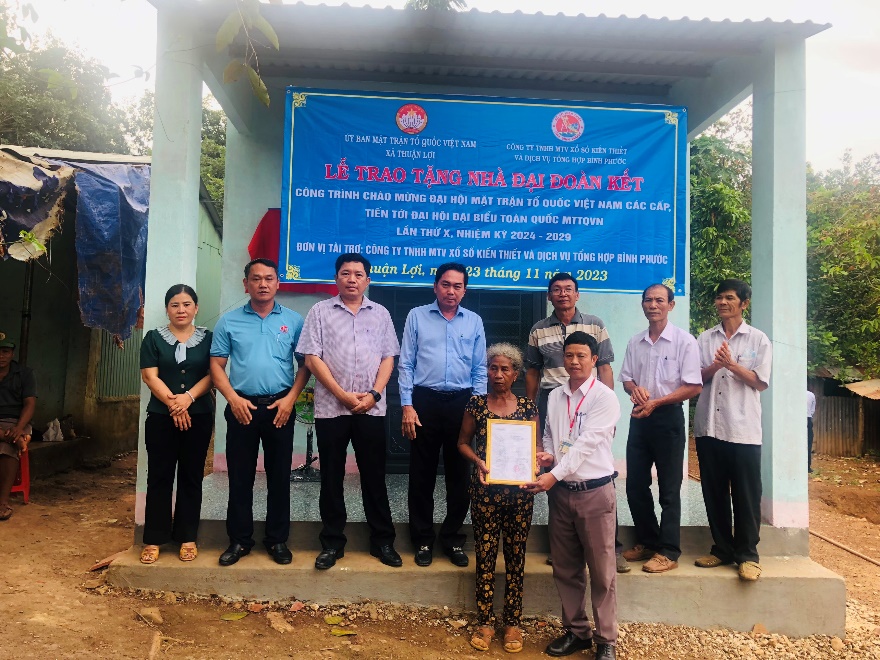 Ngày 23/11/2023, UBMTTQVN xã Thuận Lợi phối hợp với Công ty TNHH MTV xổ số Kiến thiết Bình Phước tổ chức Lễ trao tặng nhà đại đoàn kết cho hộ bà Thị Hăng, ngụ ấp Thuận Tiến, xã Thuận Lợi, thuộc diện hộ khó khăn về nhà ở. Đây là công trình chào mừng Đại hội MTTQVN các cấp, tiến tới Đại hội Đại biểu