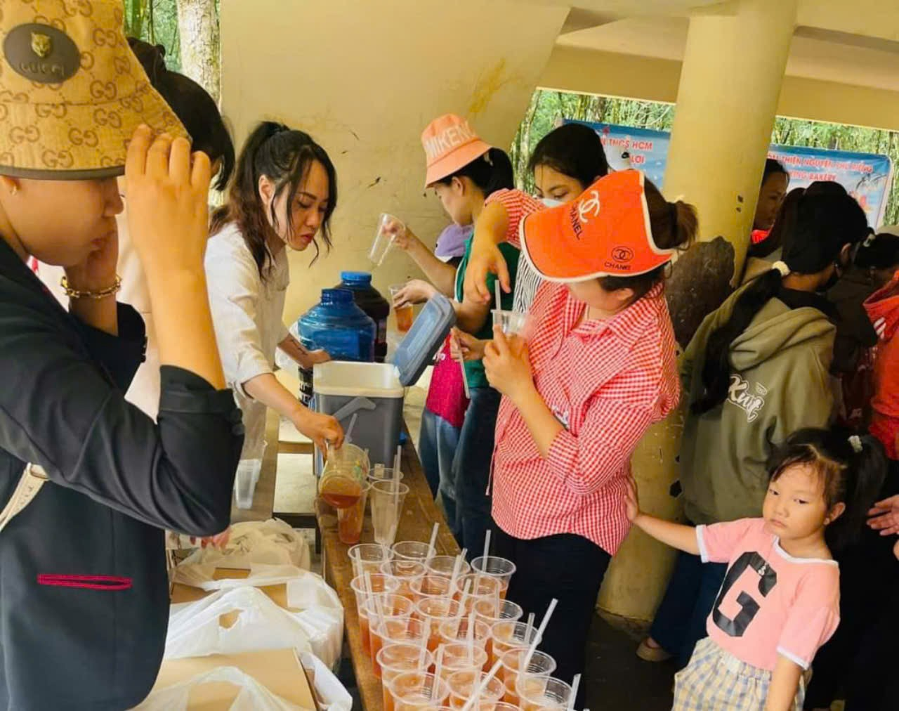 Đoàn thiện nguyện còn phục vụ nhiều đồ ăn, nước uống cho trẻ em