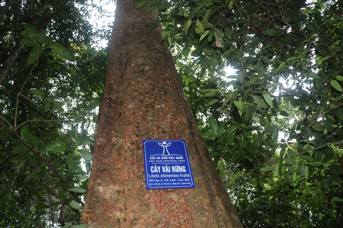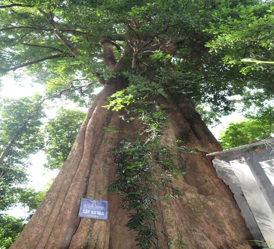 Ngay đầu bìa rừng, một cây kơ nia cổ thụ hàng trăm tuổi, có gốc to đến hàng chục người ôm được dùng làm nơi tưởng nhớ Chủ tịch Hồ Chí Minh, Đại tướng Võ Nguyên Giáp và Tổng bí thư Nguyễn Văn Linh cùng các anh hùng, liệt sĩ đã hy sinh vì đất nước. Trong rừng có hàng nghìn cây cổ thụ như bằng lăng, gõ mật, kơ nia, huỳnh đường, da, trường, bình linh… Ngoài ra còn có 54 cây gỗ mật, bằng lăng, kơ nia, chiêu liêu… đã được Hội Bảo vệ thiên nhiên và môi trường VN công nhận là cây di sản VN từ năm 2014. Đây là niềm tự hào rất lớn, đồng thời càng khiến chúng ta phải có trách nhiệm hơn trong việc bảo tồn và phát huy giá trị của hệ thống cây di sản này. Đến nay sau gần 10 năm, khu rừng này tiếp tục được Hội Bảo vệ thiên nhiên và môi trường Việt Nam công nhận quần thể 162 cây di sản Việt Nam. 162 cây di sản này thuộc 15 loài, gồm 9 cây Bằng lăng, 4 cây Bình linh, 4 cây chiêu liêu, 1 cây gõ đỏ, 1 cây chôm chôm, 1 cây hoàng linh, 2 cây mít rừng, 1 cây lười ươi, 2 cây tung, 1 cây dầu cát, 2 cây chò chai, 1 cây đa, 1 cây xoan đào, 2 cây kháo nhậm và 130 cây Kơ nia.