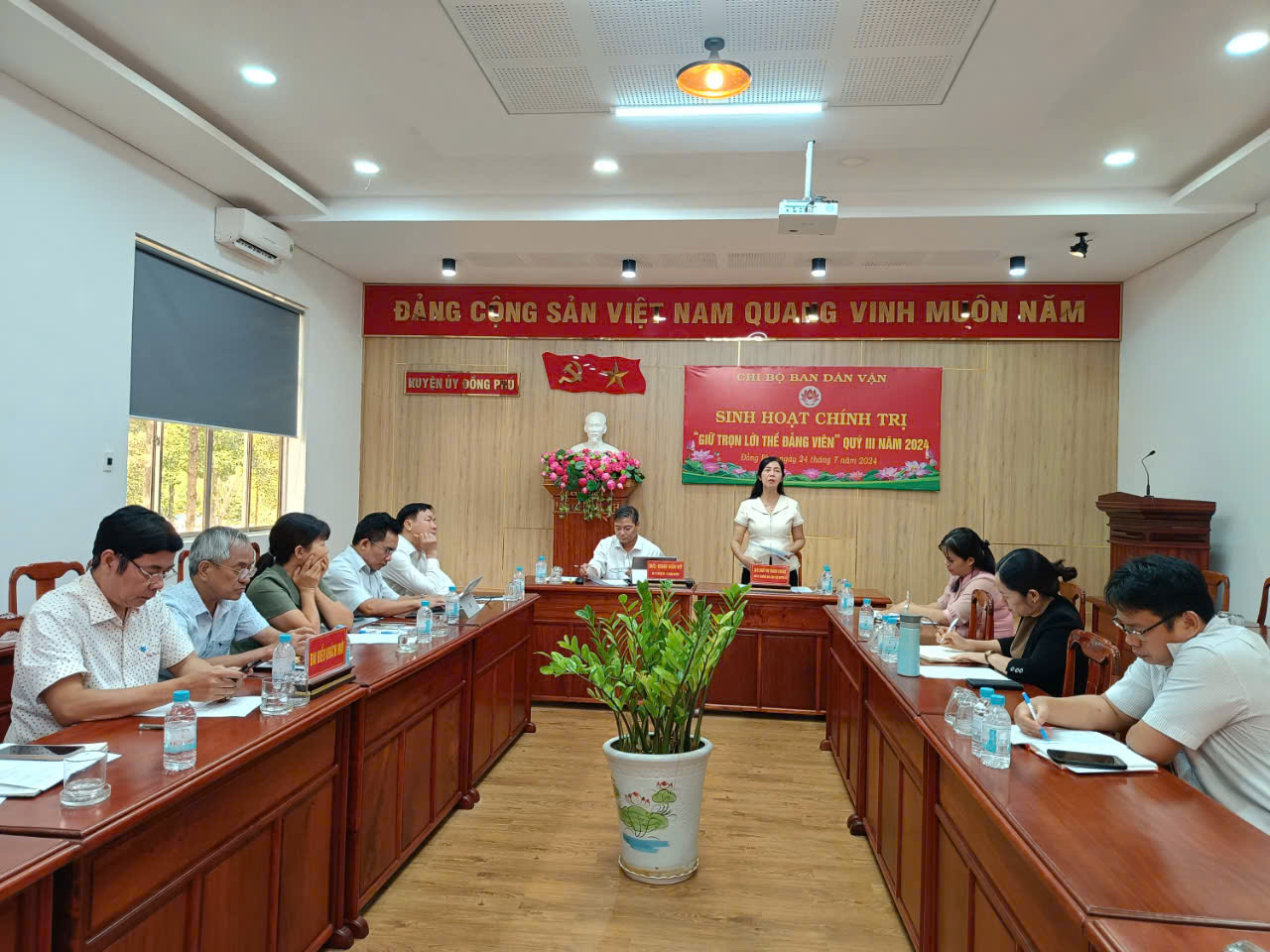 Phát biểu chỉ đạo, Phó bí thư thường trực Huyện ủy Đinh Văn Kỹ đề nghị từng đảng viên Chi bộ Ban Dân vận phải luôn phát huy tính tự giác, lòng tự trọng, tích cực nêu gương, nói đi đôi với làm; hoàn thành tốt nhiệm vụ của người đảng viên, góp phần xây dựng “Chi bộ 4 tốt, đảng viên 4 tốt”.